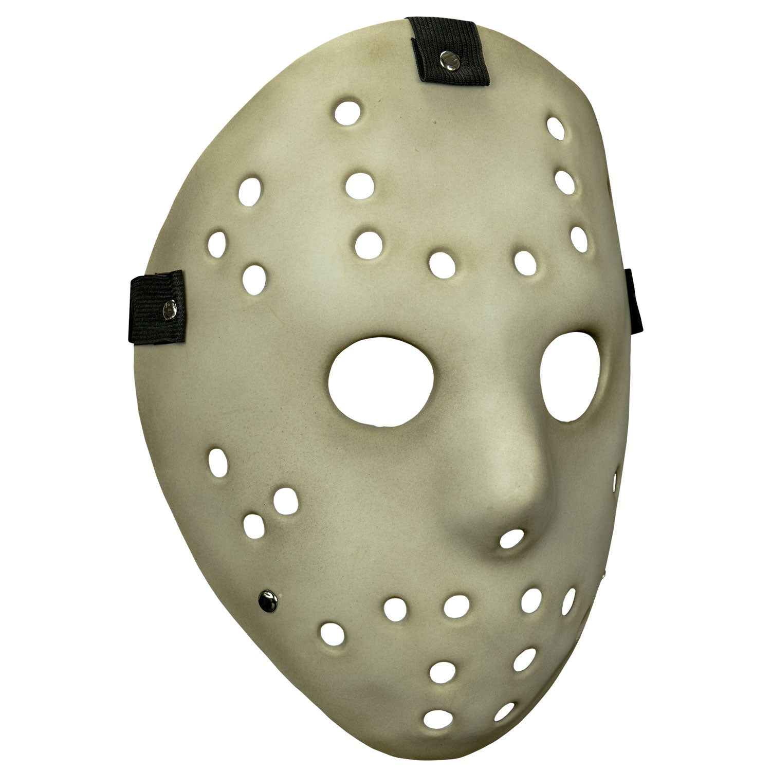 He has a SCORE to settle! This Killer Goalie Antique Mask is made with white injection molded plastic and a three way elastic strap, painted to look authentically weathered. Perfect for your Jason cosplay!