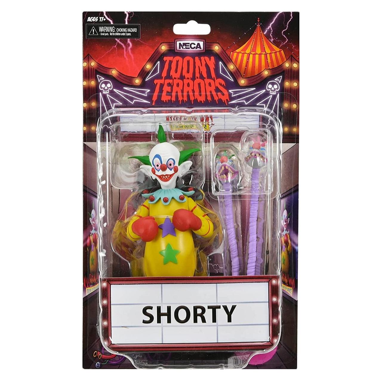 This 6" Scale Shorty Action Figure from NECA's Toony Terrors collection faithfully represents Shorty from Killer Klowns From Outer Space. As a licensed collectible, it combines stylized design with detailed craftsmanship, capturing the character’s distinctive features in a compact, display-ready form. Perfect for collectors seeking a high-quality, officially sanctioned figure that highlights the unique charm of this cult horror icon.