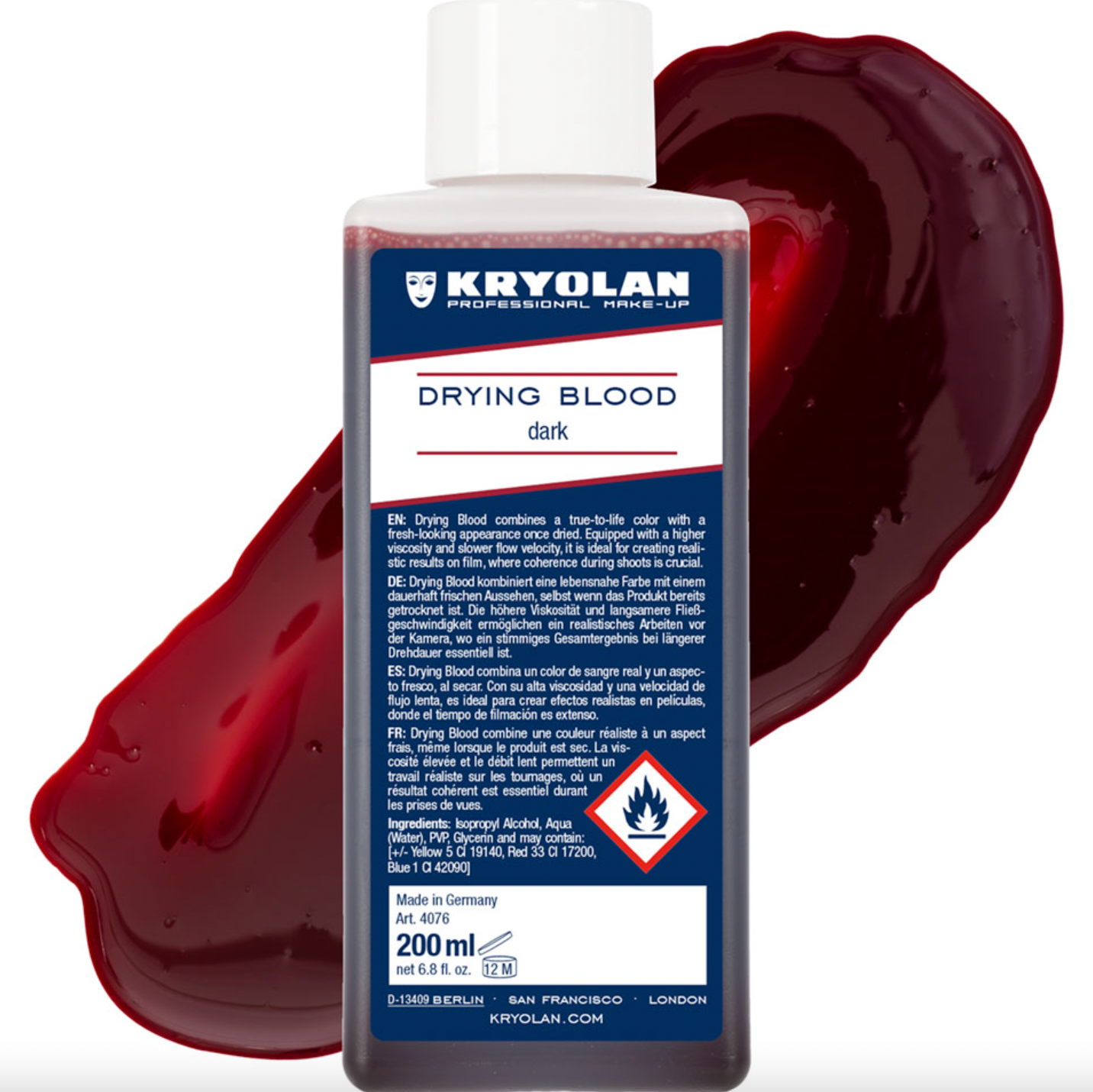 Drying Blood combines a true-to-life color with a fresh-looking appearance once dried. Equipped with a higher viscosity and slower flow velocity, it is ideal for creating realistic results on film, where coherence during shoots is crucial.