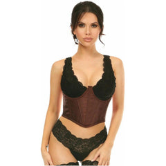 Lavish Dark Brown Brocade Open Cup Waist Cincher