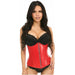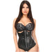 Every square inch of this underbust corset oozes sex appeal. From its alluring contours to the shimmering visual effect that you can only get from high-quality faux leather with a wet look finish. It comes with waist tape and garter loops included. The body of the corset helps to sculpt and slim your natural figure with the help of 8 plastic bones with 4 static steel back bones. Once you tie up the thick cording and nickel brass grommets to your preference, the front zipper harness lets you hold yourself in without having to alter the custom fit.