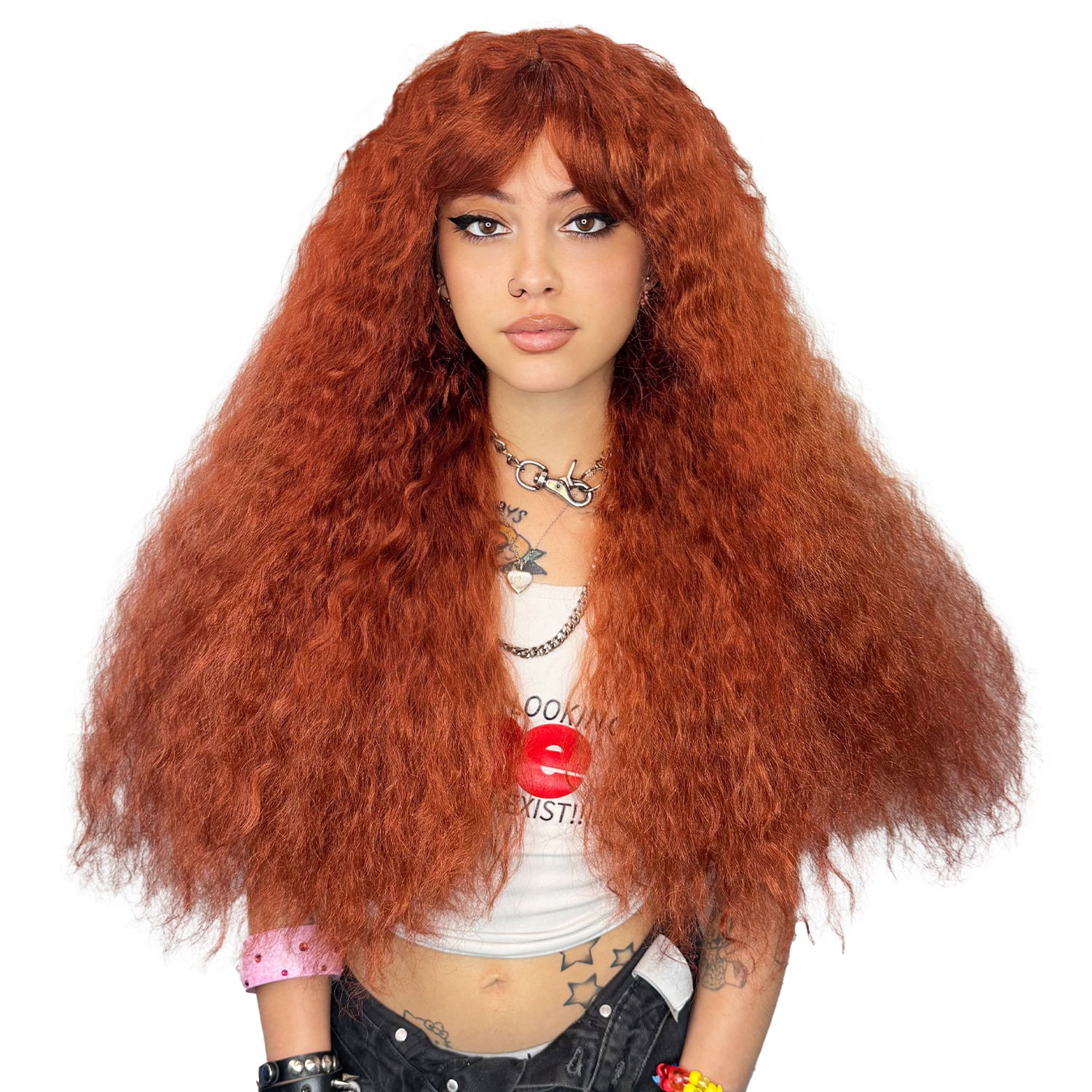 Hit it like rom-pompompom in this Lucky Babe Wig! This extra long, extra curly red wig is perfect gives pop sensation all over- perfect for your midwest princess costume or drag tribute.
