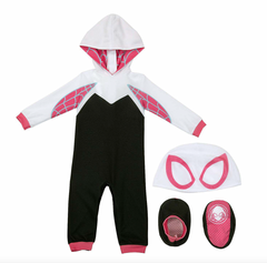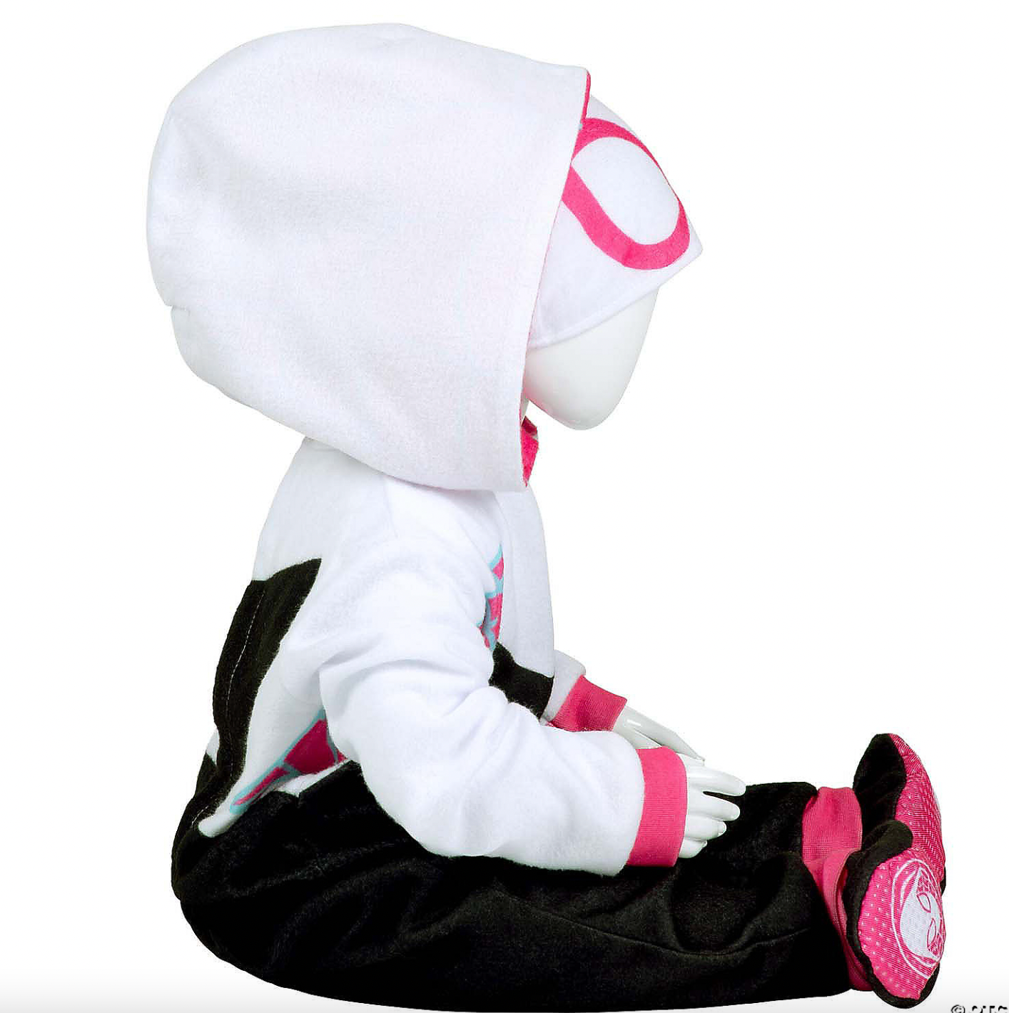 Now your little one can help save the Spider-Verse in the MARVEL Ghost Spider Official Infant Costume. Featuring a graphic design of Gwen Stacy's unique spider suit, this printed jumpsuit will make your little one look just like their favorite hero. All suits are made from high-quality material with high-resolution prints.
