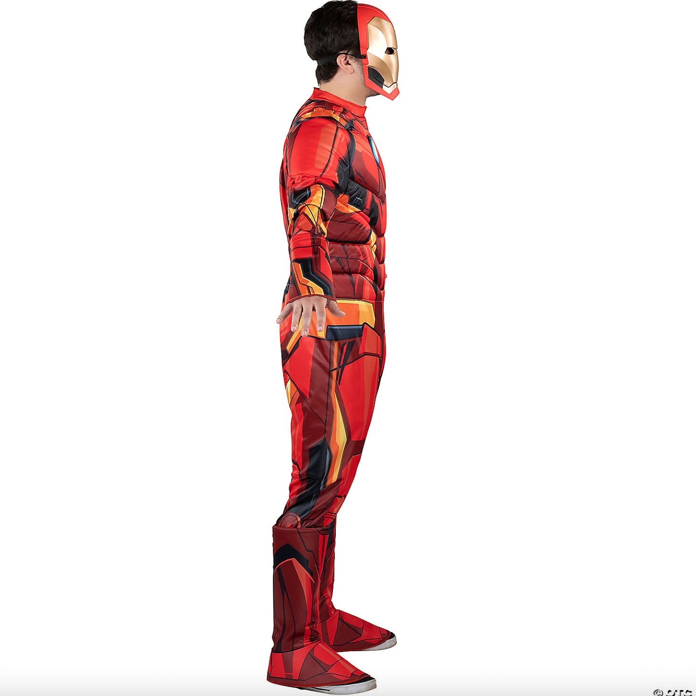 Join the Avengers with the MARVEL Adult Iron Man Costume. Featuring a graphic design of Tony Stark’s iconic armor, this sublimated print jumpsuit includes padding in the chest, arms, and boot tops in addition to a hook and loop fastener. It also includes a 3D plastic mask with metallic paint and an elastic strap. Officially licensed MARVEL product.