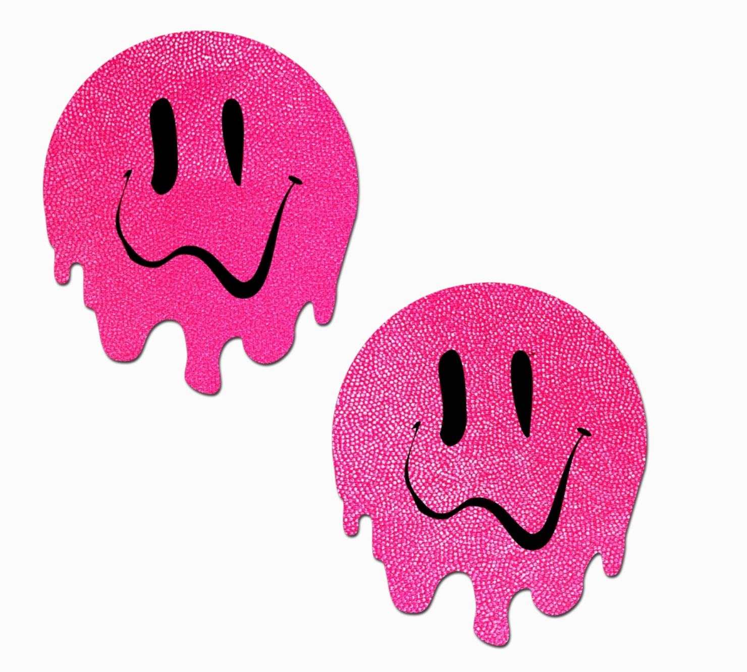 Unleash your playful side with Melty Smiley Face: Neon Pink Melted Smiling Face Pasties! These cheeky pasties feature a fun and quirky design that will make you stand out in any crowd. Made with high-quality materials, they are comfortable to wear and sure to bring a smile to your face.