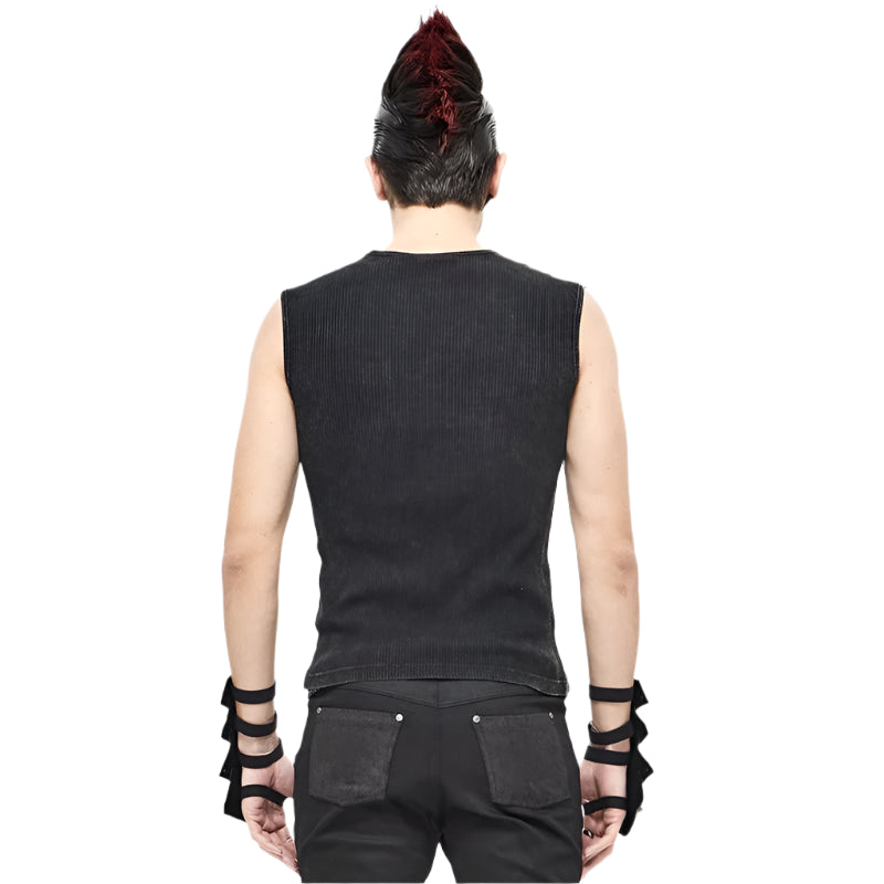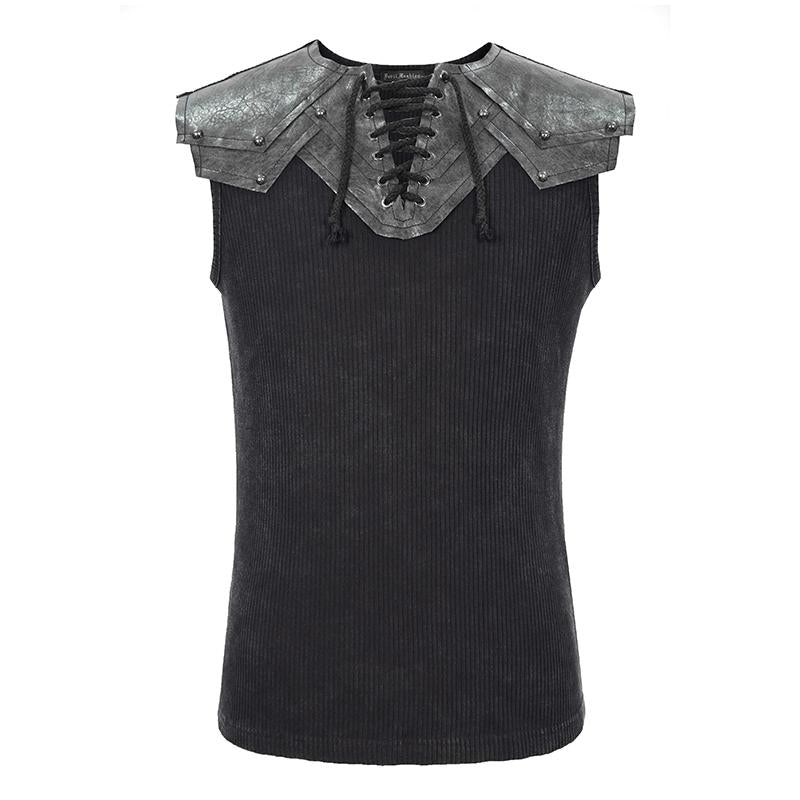 This sleeveless Men's Black Futuristic Top features a lace-up faux leather neckline and makes a versatile addition to any cosplayer's closet. Perfect for everyday goth looks, dark fantasy ensembles, or contemporary vampire costumes.