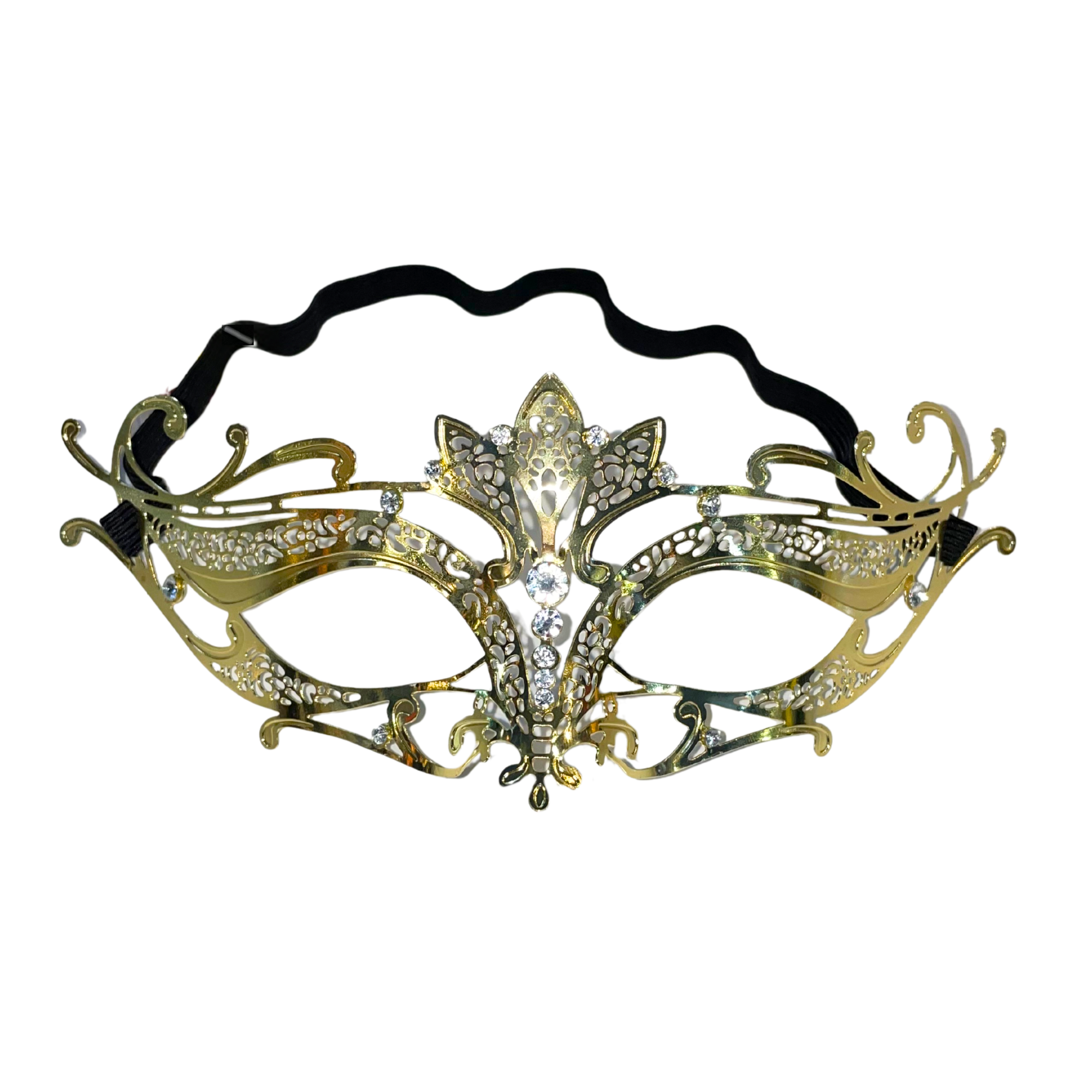 Basic Gold is one of those fashion terms that almost gives you the impression that anything gold is inherently plain. Though this Metal Venetian Mask takes that notion and spins it on its ear with details that replicate delicate, ornate lace. This is thanks in large part to 21st Century laser cutting technology, which can replicate lace with the press of a button and a whole lot of state-of-the-art technology.