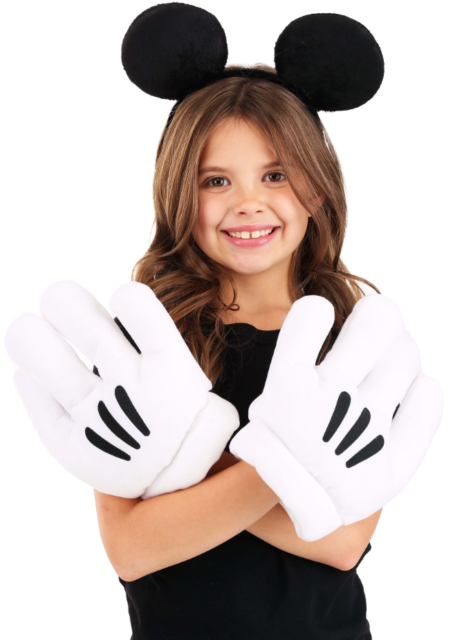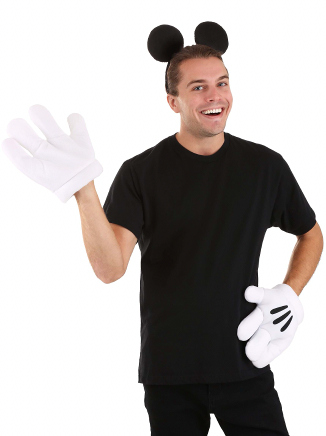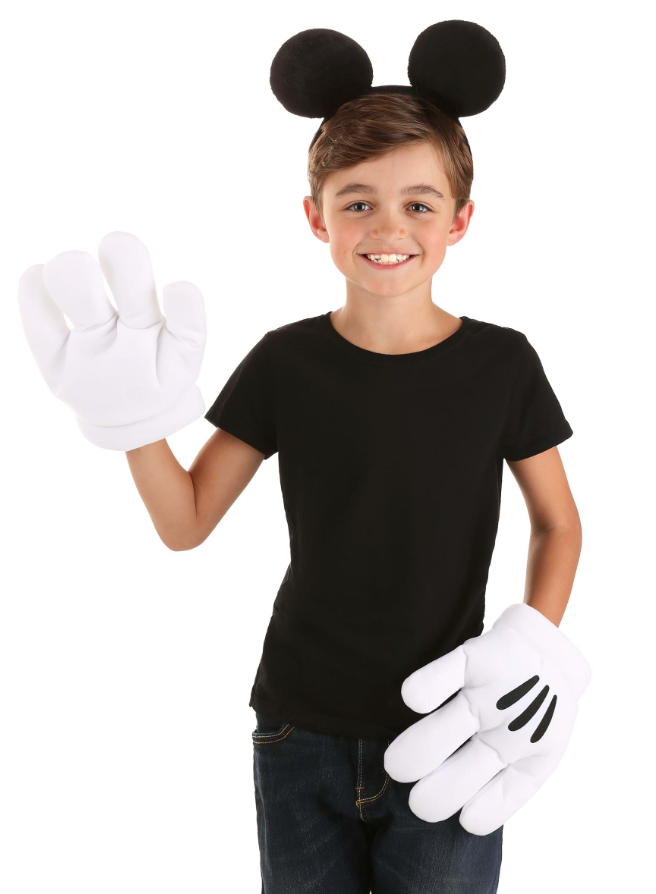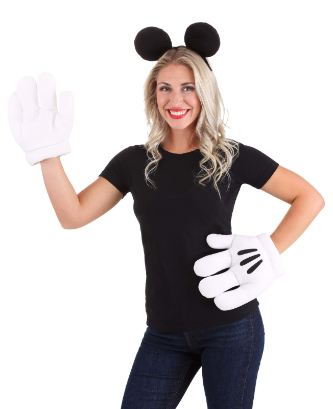 Hot dog, you're gonna be a natural fit for the clubhouse with this Mickey Ears & Gloves Set! This quick and easy kit includes Mickey's iconic ears on a soft headband and a pair of plush oversized gloves to help you transform into Disney's beloved mouse mascot.