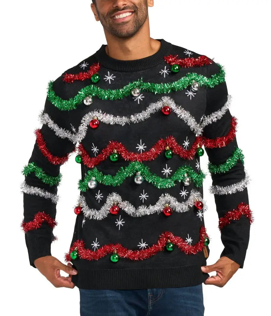 You know the drill: when the clock strikes midnight, you’d better be fast asleep before Santa makes his way down the chimney with your Christmas wishes. For those that cut it close to the wee hours of the morning, the Men's Midnight Garland Light Up Ugly Christmas Sweater is for you. Use the light up feature to light the way on the most festive night of the year!