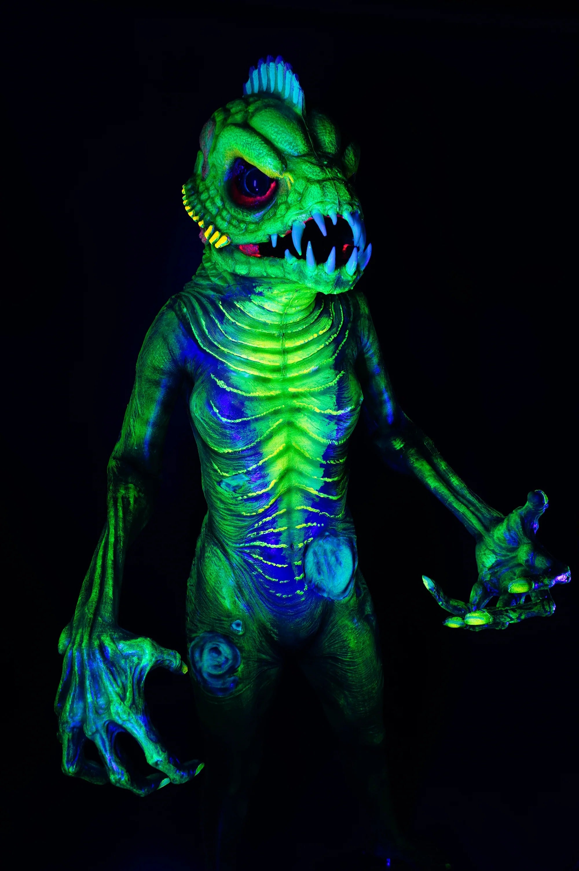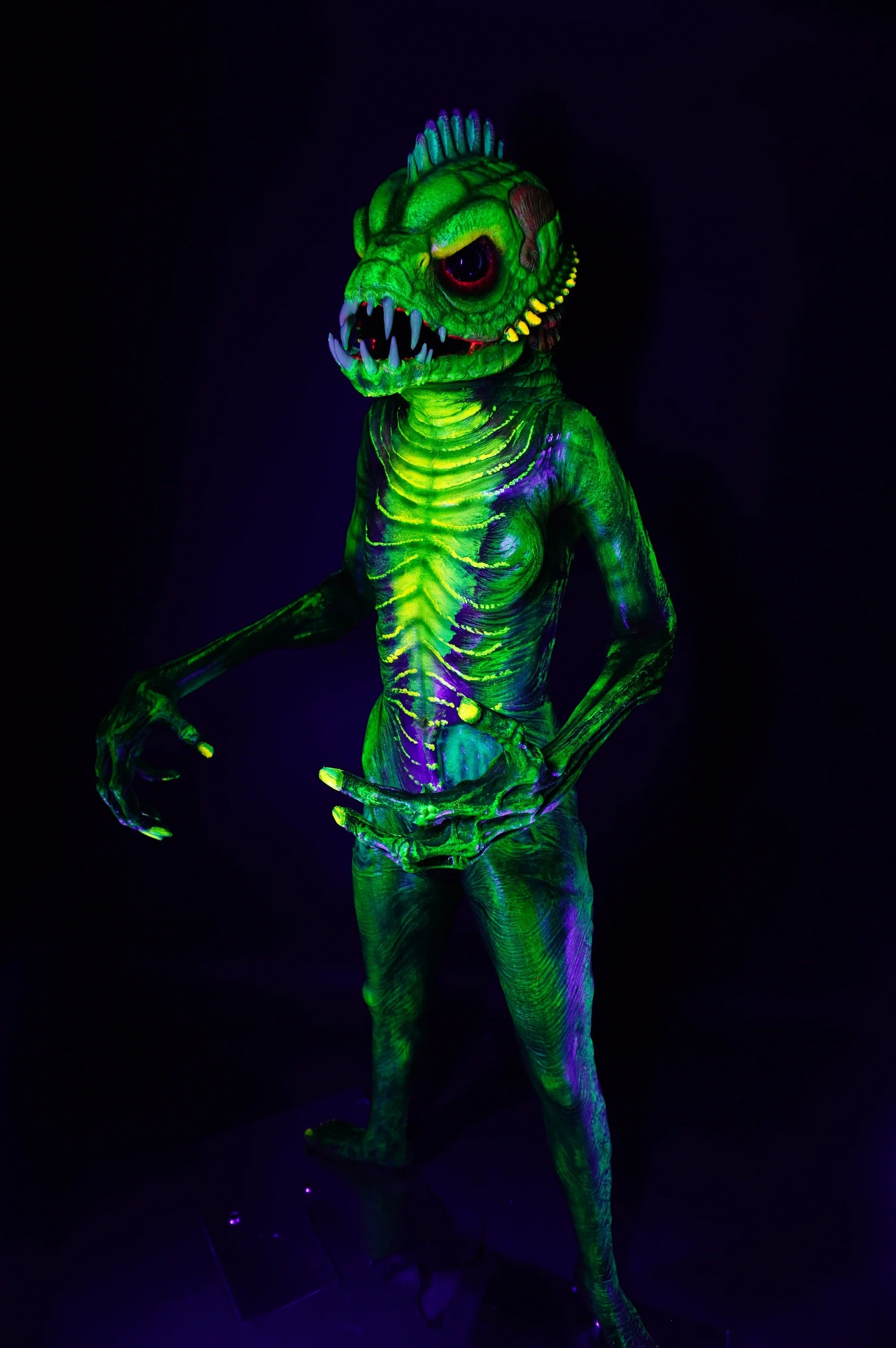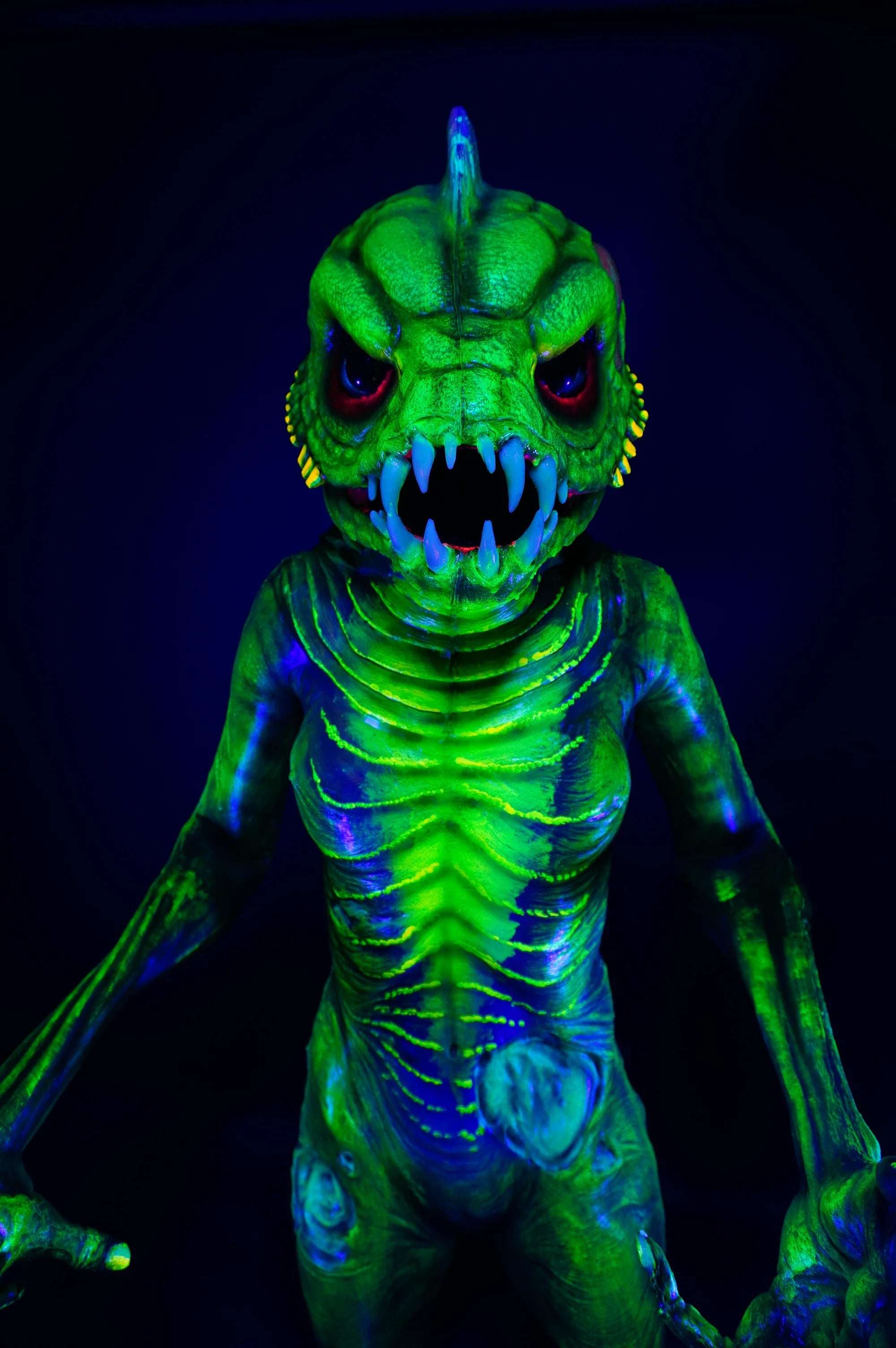 Prepare to meet your watery maker! This Murky Lagoon Creature Blacklight Prop is life sized with a neon paint job that highlights its freaky features underneath any UV light. Great for adding spooky swamp vibes to any haunted house!