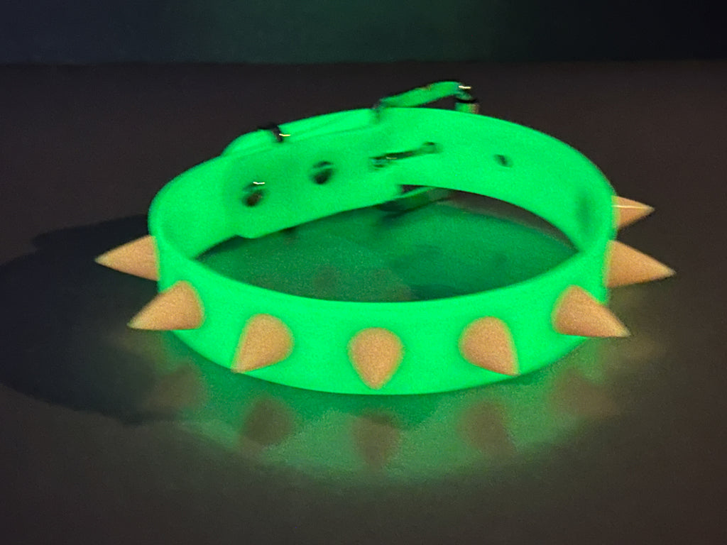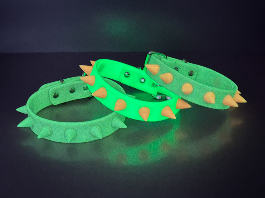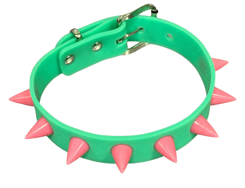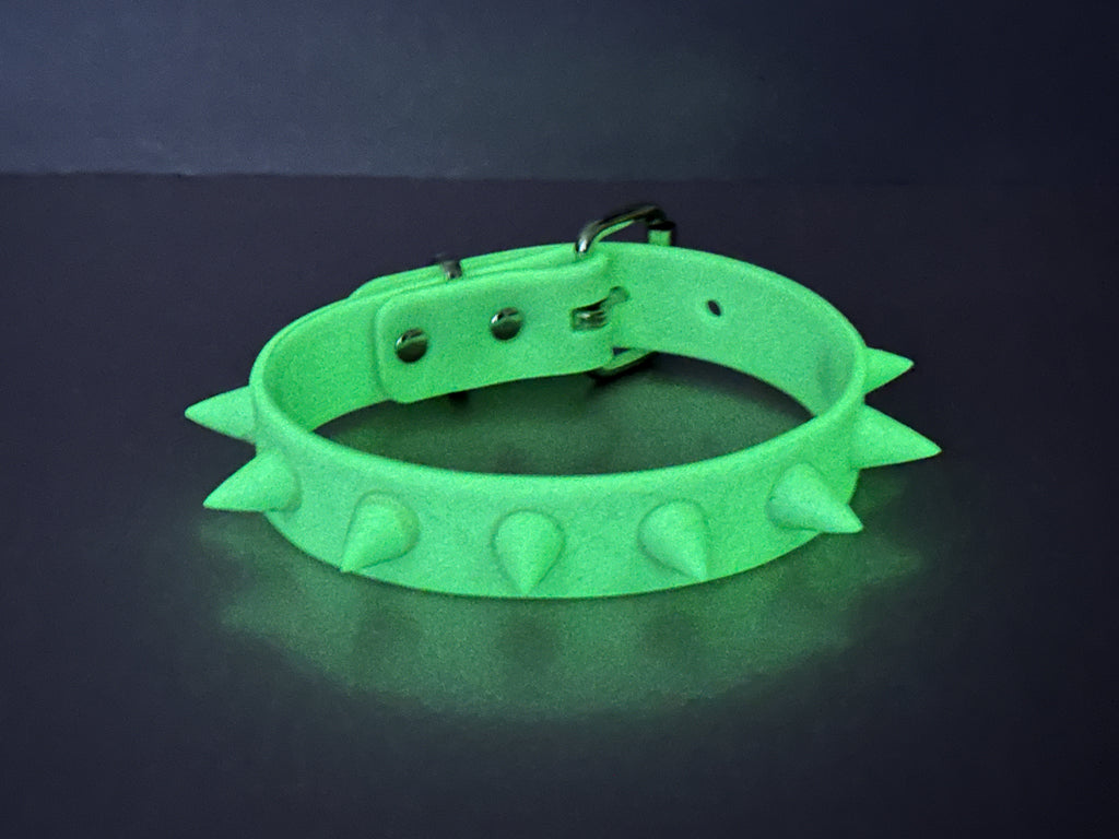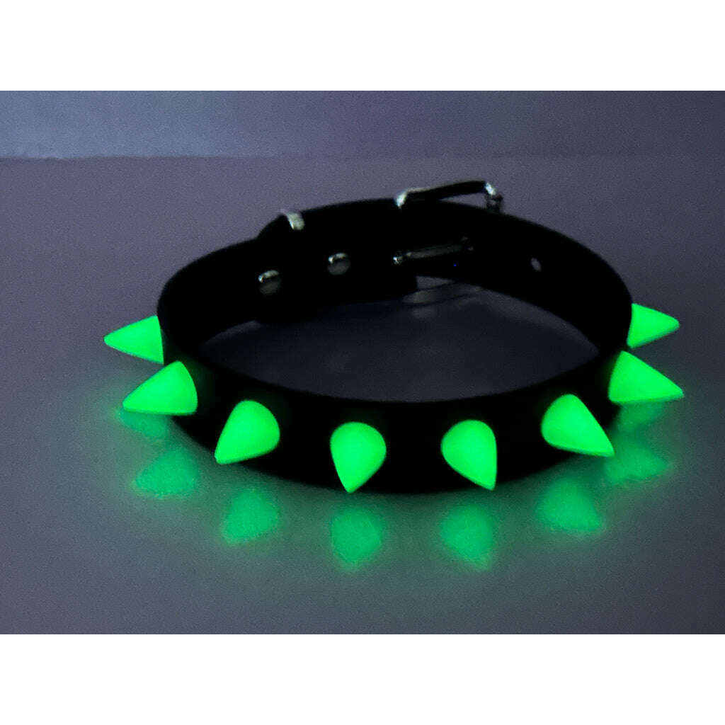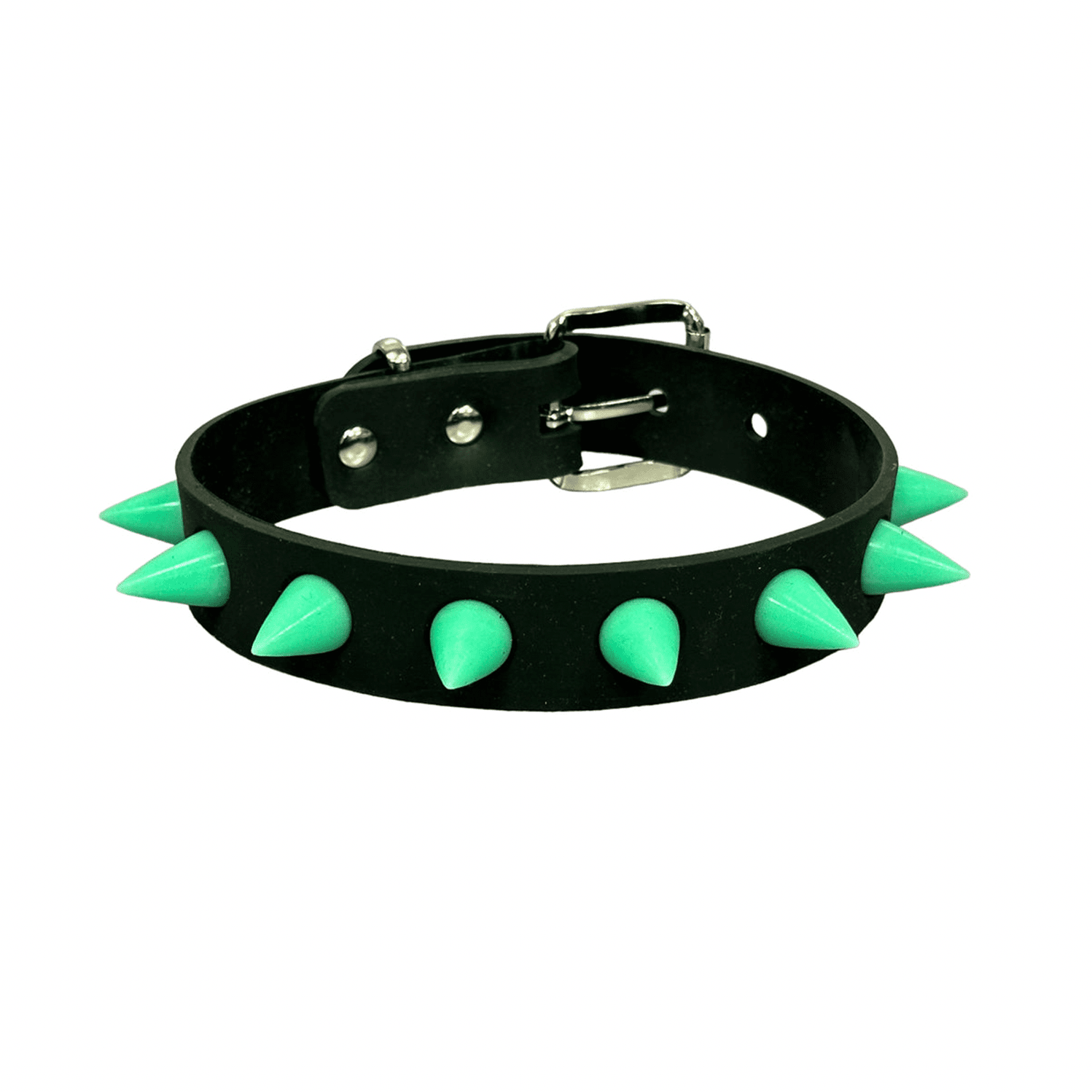 When the lights go out, let your true colors come out to play in this Nightcrawler Glow In The Dark Silicone Spiked Choker! These unique rubber chokers add a playful pop of color to any festival or rave outfit and transform to a vibrant glowing green hue in the dark.