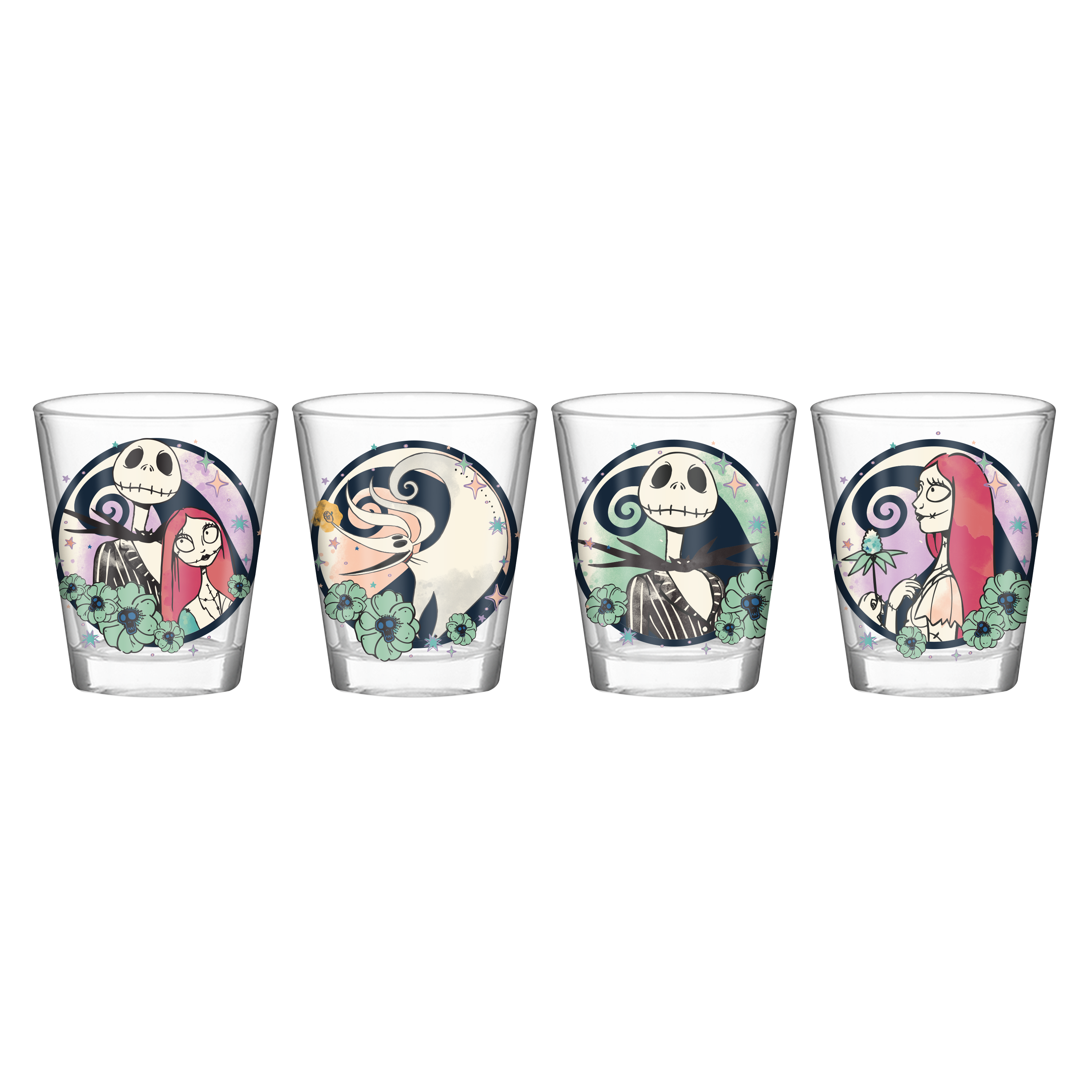 Toast to spookiness with this 4 pack of Nightmare Before Christmas shot glasses. Each glass holds 1.5oz and features beloved characters from the classic film. Hand wash only. (Don't let them get lost in Christmas town)!