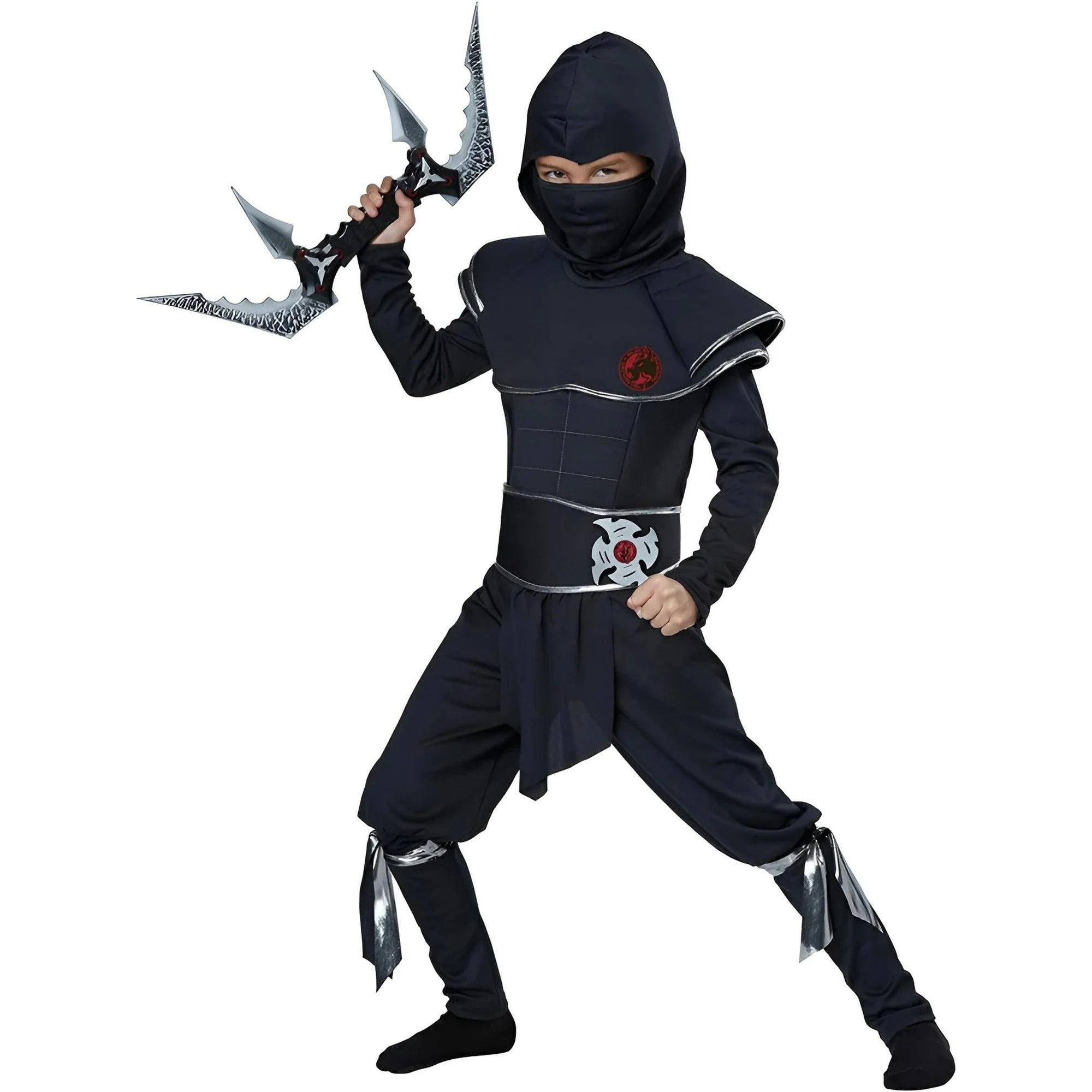 Before they were faux athletes jumping over water slides and climbing peg walls in hopes of scoring some quick cash, Ninja Warriors were masters of stealth and mystery. You see that showing up in the impressive details of this costume. It is made from high-quality, black polyester that is dark as the night and twice as silent as death. You get the jumpsuit which fastens with Velcro at center back. There’s also a hood which has wide foam cowl collar with stylized silver edging as well as printed red dragon emblem. The black mask has self-fabric ties behind head and neck for comfortable adjustability. It also comes with a special silver foam throwing star. You can get it in youth sizes small, medium or large.