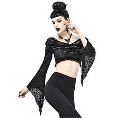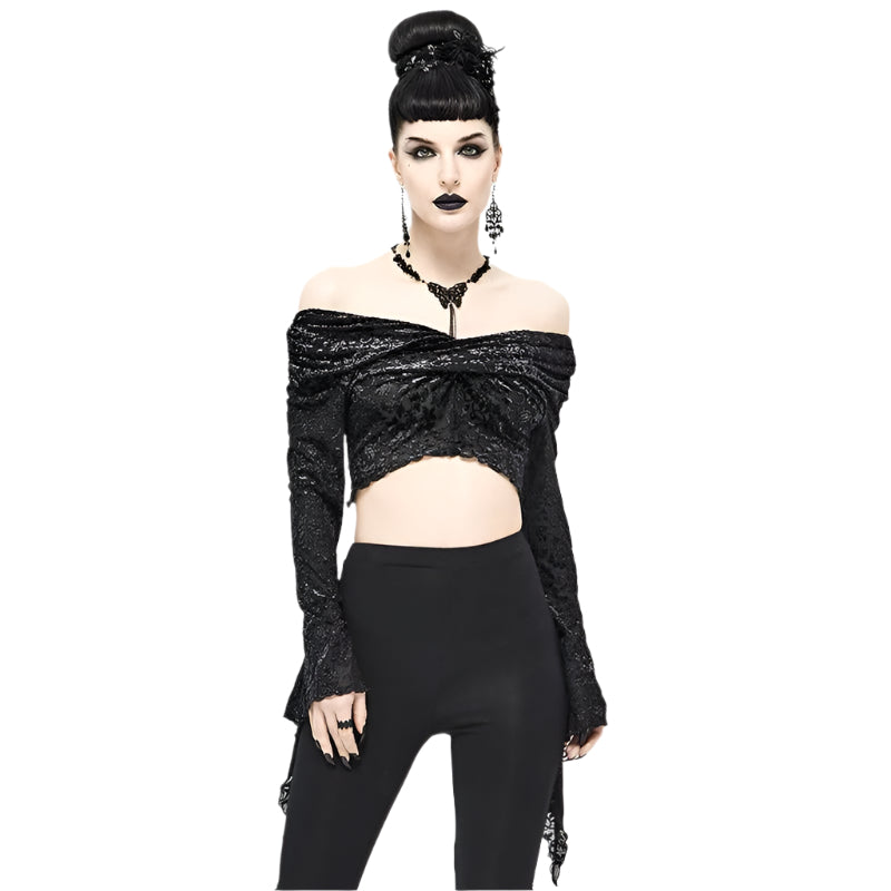 This Cold Shoulder Vamp Crop Top is the ultimate statement piece for a fashion-forward creature of the night. Also great for taking vampire and witch costumes to the next level.