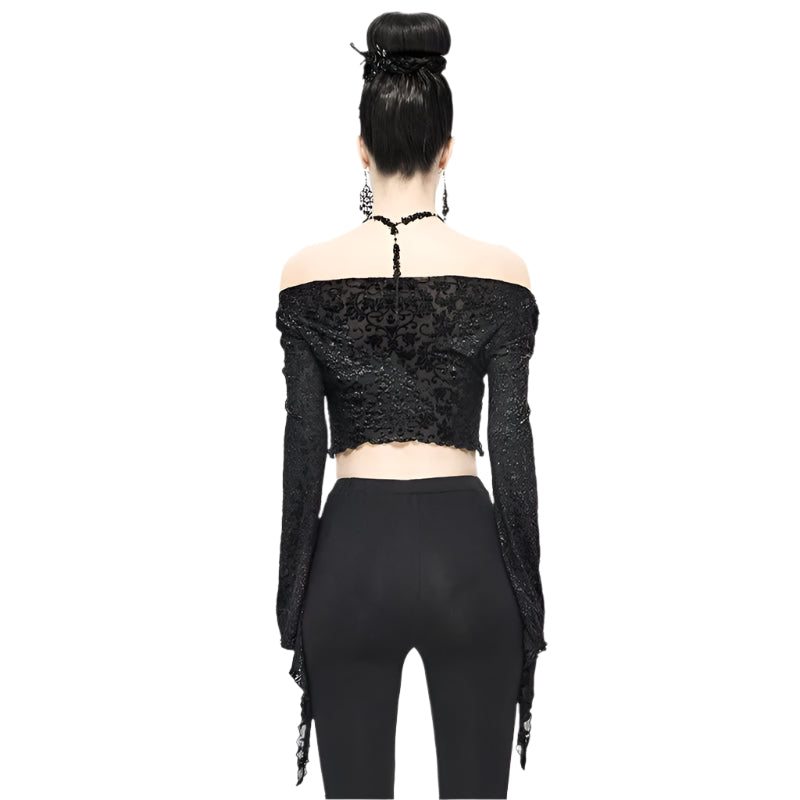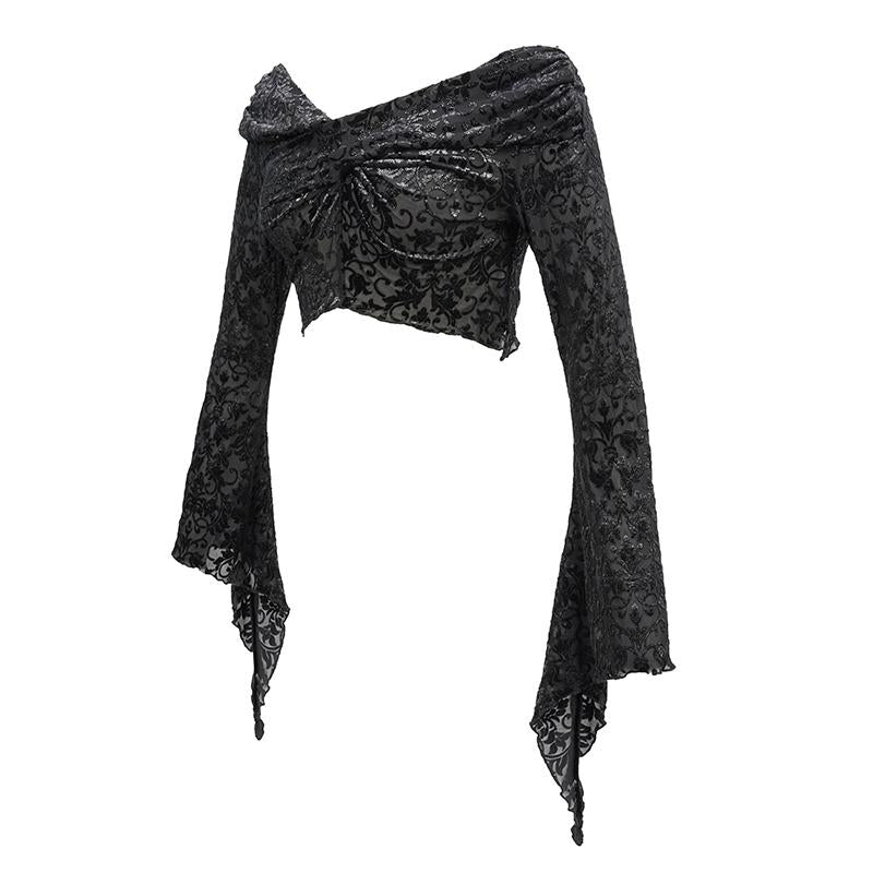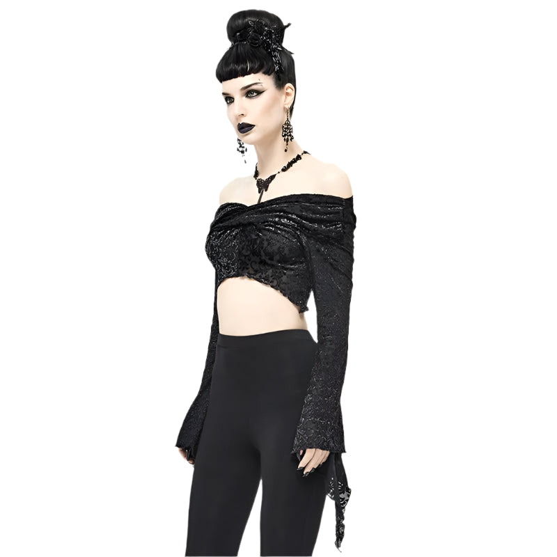 This Cold Shoulder Vamp Crop Top is the ultimate statement piece for a fashion-forward creature of the night. Also great for taking vampire and witch costumes to the next level.