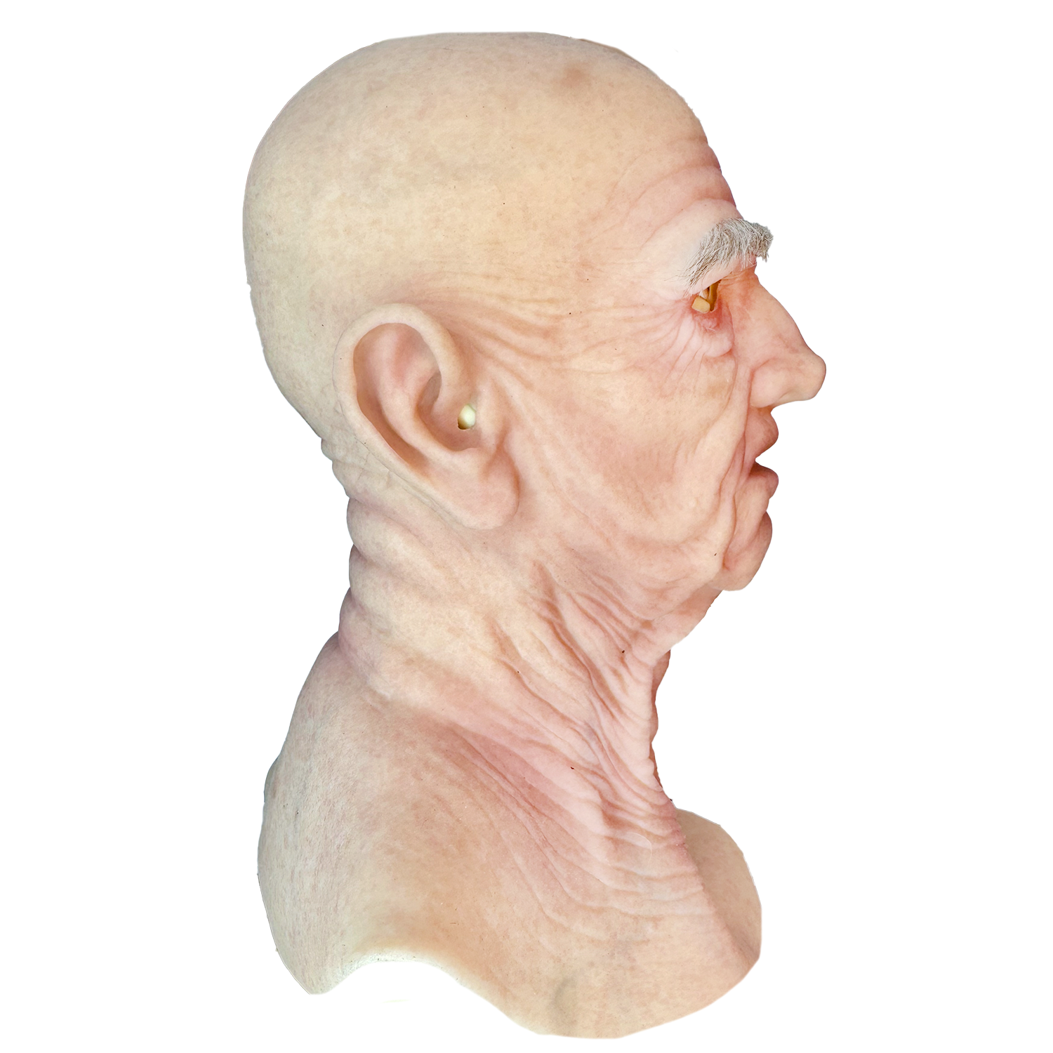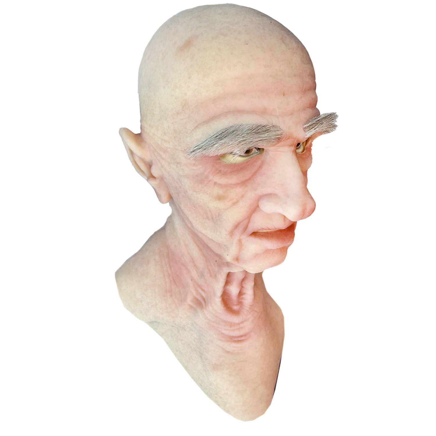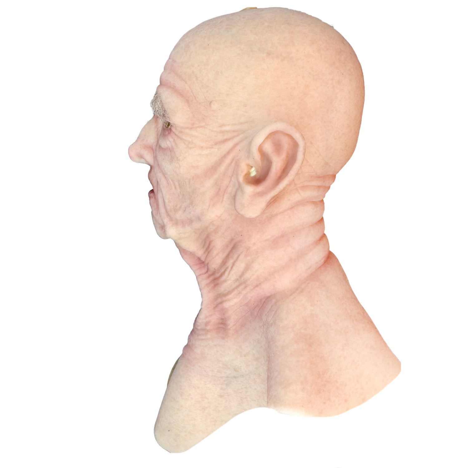 Age has not been kind to Old Man Geezer, and it shows in every deeply etched wrinkle, sagging jowl, and loose fold of flesh. Whether he's a cantankerous old man yelling at kids to get off his lawn or an ancient sorcerer with centuries of wisdom behind his piercing gaze, this mask is as versatile as it is unsettlingly lifelike. The meticulously sculpted skin texture, realistic aging details, and individually hand-punched eyebrows create an uncanny realism that will make onlookers do a double-take.