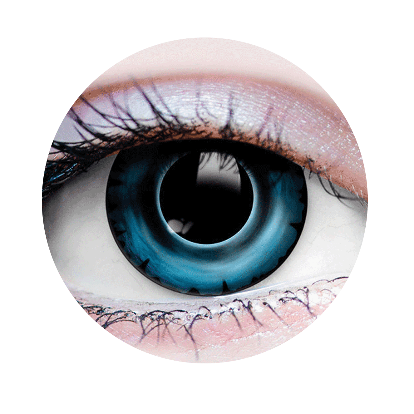 Our PIRANHA I contact lenses will give you the soul of a ruthless apex predator. They feature a wide, black pupil, sharp and focused like a piranha's hunger—a resounding splash of blue, mimicking the perfect fish eye effect.