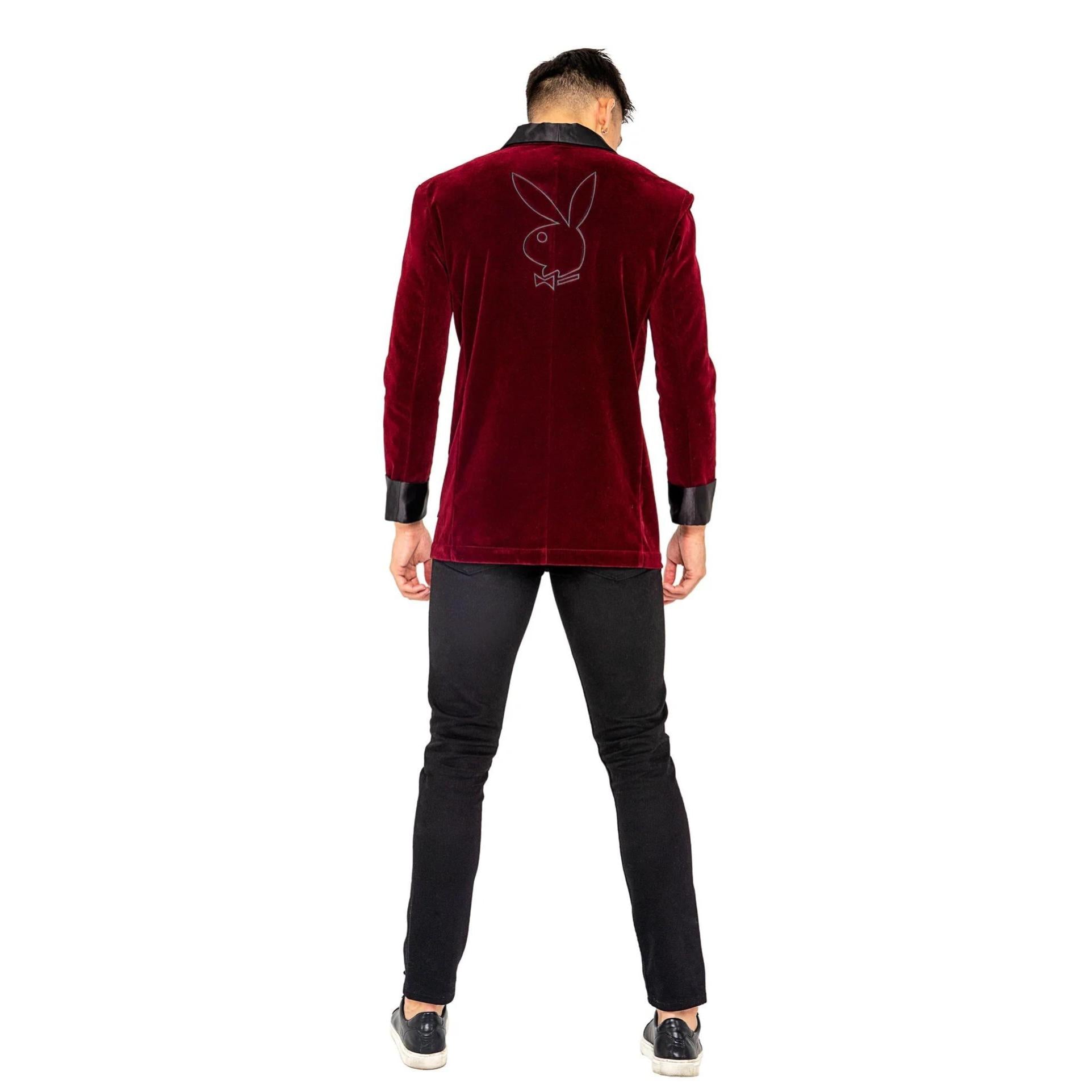 Only the best look for the top gentleman at the mansion. Our luxe Playboy Smoke Lounge Gent smoking jacket will have you looking like a million bucks. This velvet jacket comes in a Playboy’s familiar deep, dark burgundy color and it is soft to the touch—people will not be able to keep their hands off of you. This jacket has a wide, low cut opening for ultimate comfort and exposure, coordinating satin lapel and sleeve cuffs, along with matching piping detail along the pockets. To subtly enhance this look, shoulder pads are built in, and the iconic Playboy Bunny logo is embroidered on back. You can leave the jacket open, or close it with the vintage-inspired closure.