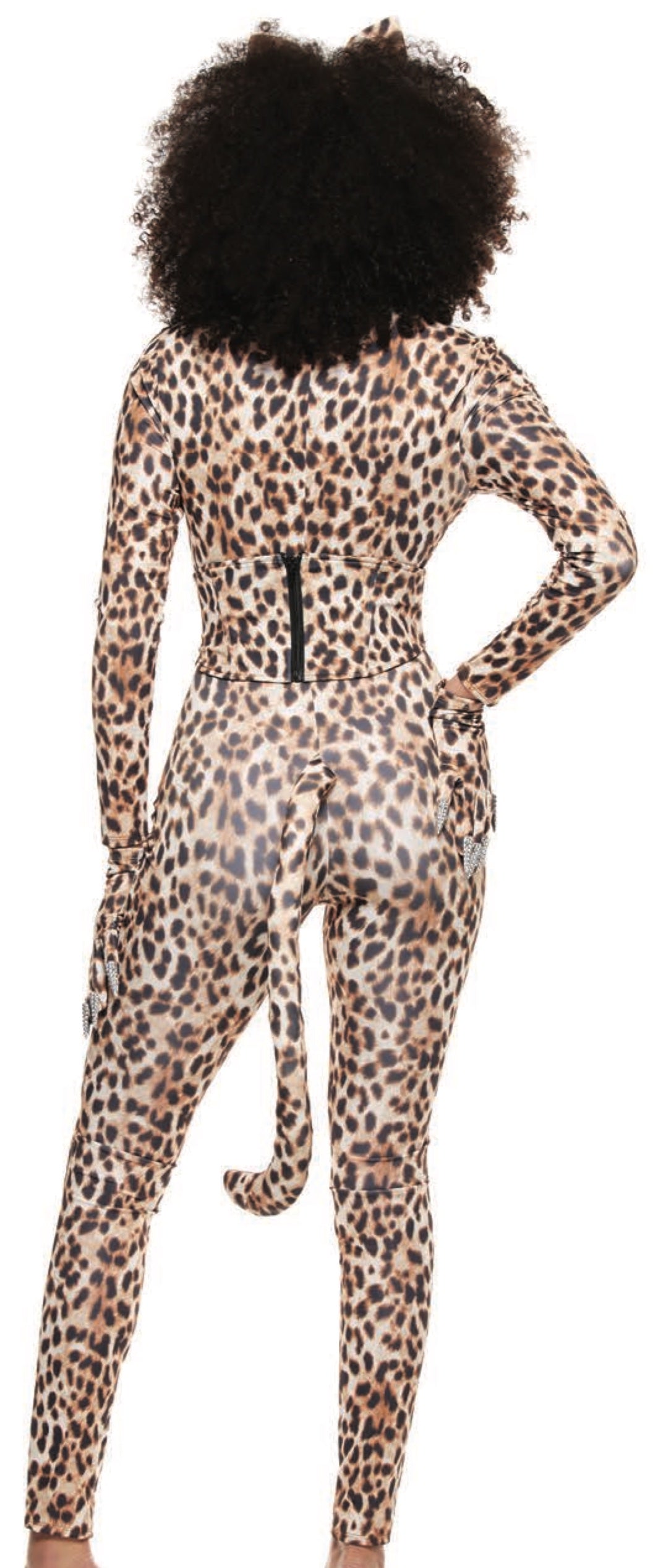 • Scoop neck bodysuit with all over leopard print and attached tail