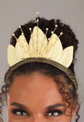 - ELEGANT CROWN: Features foam-backed petals with faux pearls and upright wires for a regal look
