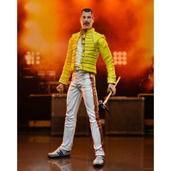 Bring the power of rock royalty to your shelf with this electrifying 7” scale Freddie Mercury action figure, immortalizing his unforgettable look from Queen’s legendary 1986 Magic Tour. Dressed in his signature yellow military-style jacket and white pants with red and gold stripes, this figure captures Freddie at the peak of his stage command — full of flair, fire, and unstoppable charisma. Whether you’re recreating his final performance in front of 120,000 fans or just want a piece of rock history that can strike a killer pose, this collectible hits all the right notes.