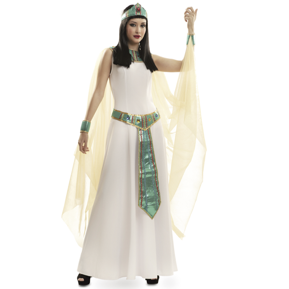 Feel like the ultimate queen of the Nile in this seductive Queen Cleopatra Women's Costume! This simple yet sexy white dress features shimmery green accents and includes a tiara headpiece that'll have you commanding attention at any costume party.