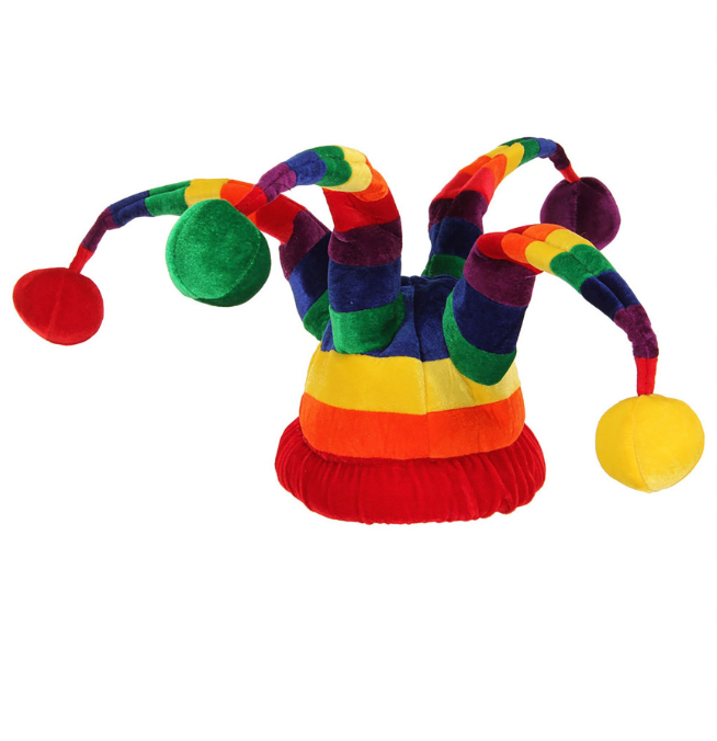 Designed to fit jokers and fools of all sizes with the aid of the internal size adjuster, this hilarious hat makes a great addition to your whimsical wardrobe or novelty dress-up collection. You’ll be prepared to please the king, the queen, and the whole palace in this Rainbow Wacky Jester Hat!
