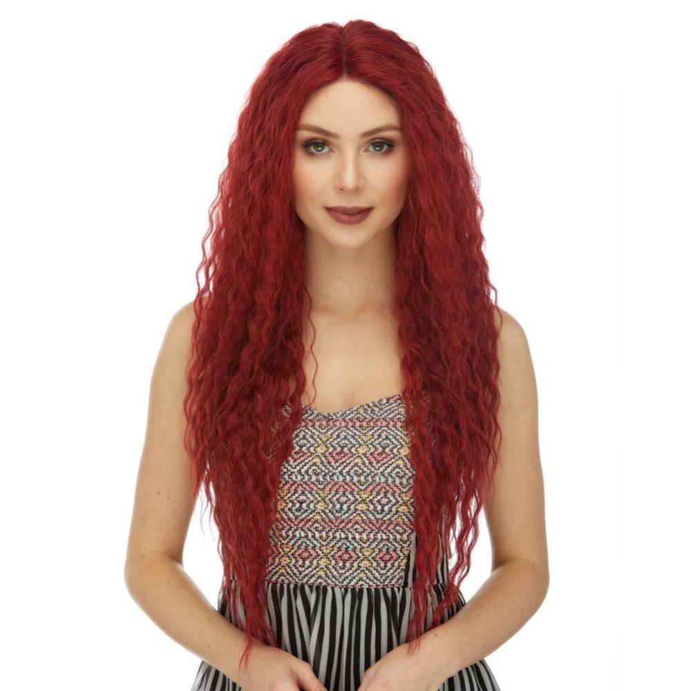 This Raven Lace Front Wig has long wavy locks, full of body. The deep 5" center part gives this style a sweet note on this rather wild 'do.