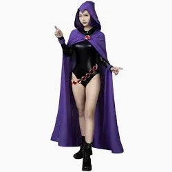 Step into the world of Teen Titans with the Titan Raven Cosplay Adult Costume. Crafted for cosplay enthusiasts, this detailed outfit features a shiny bodysuit with a convenient back zipper, a flowing purple cape secured by a red rhinestone pin, and an eye-catching ruby red metal adjustable chain belt. Available in sizes XS to XL, it offers a perfect fit for any fan. Whether you choose to rent or buy, this costume promises to bring your Halloween or cosplay event to life with authentic style and comfort.