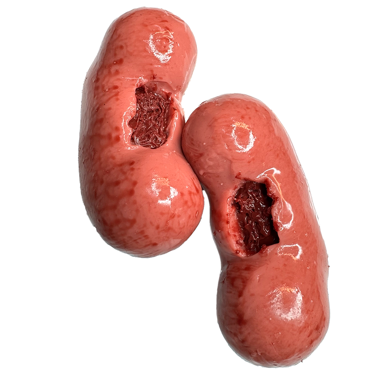 This high quality pair of Realistic Silicone Kidneys are hand made with realistic interior detail, sheen, and blood drip. Perfect for your next film or stage production!