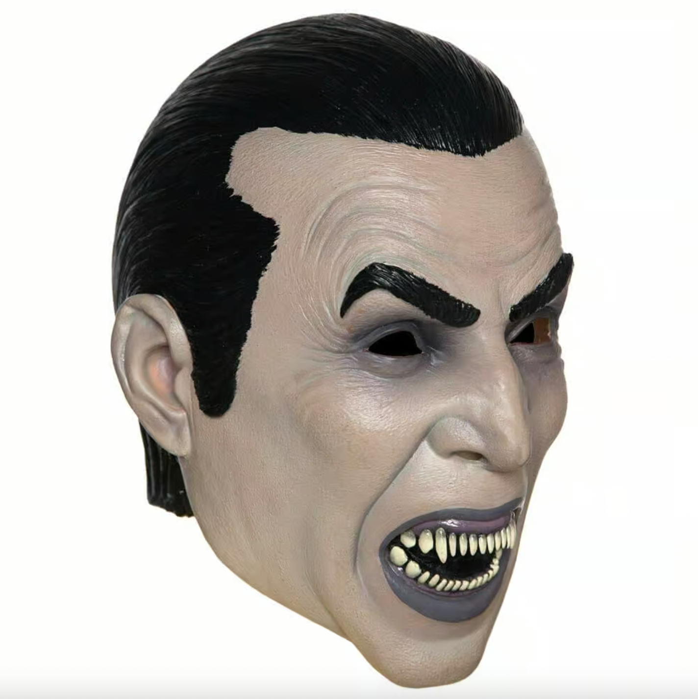 This is an officially licensed Universal Studios Latex Dracula Mask from the film, Renfield. This highly detailed, hand painted latex mask has an ”under the chin” cut which is designed to fit comfortably on the head and allow for complete mobility without interfering with the costume. Some call him the Dark One. Others… the Lord of Death. However, to most he is known simply as… Dracula.