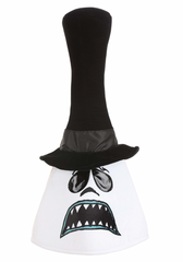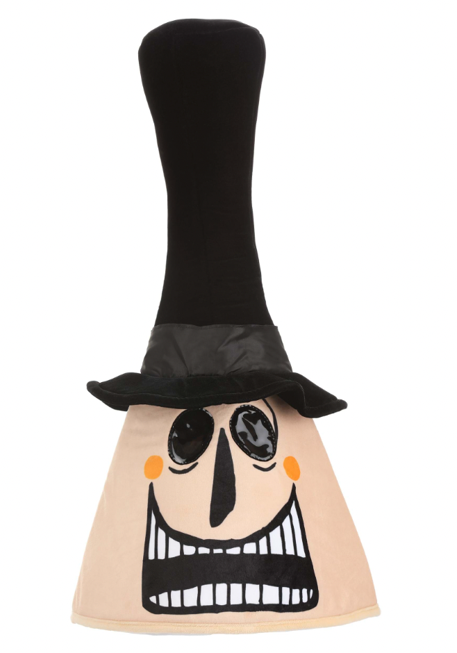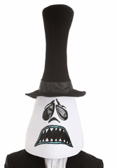 Pay homage to a favorite stop-motion animated movie with this officially licensed Reversible Nightmare Before Christmas Mayor Mask! The soft fabric mask has a flesh-toned, triangular face underneath a skinny fabric top hat. One side of the mask is printed with the Mayor's well known open-mouthed grin, while the other side is printed with his angry frown. Both sides feature nose and eye details, and both feature viewing ports so that you can (sort of) see where you're going.