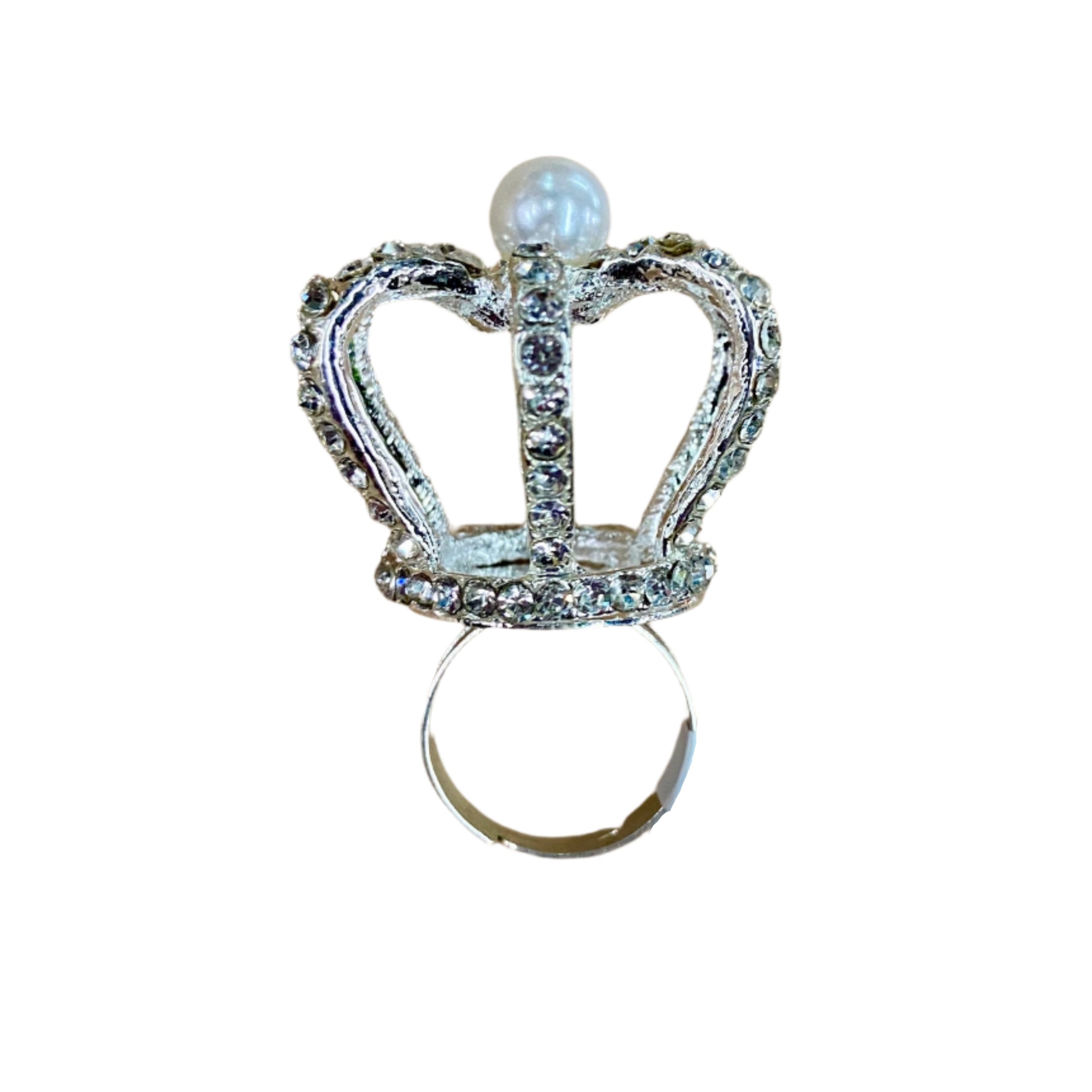 Now here's a ring worth kissing! This elegant Rhinestone Embellished Crown Ring features stunning rhinestones and a charming pearl atop. Available in both gold and silver, it is the perfect addition to any outfit. Elevate your style with this regal and timeless accessory.