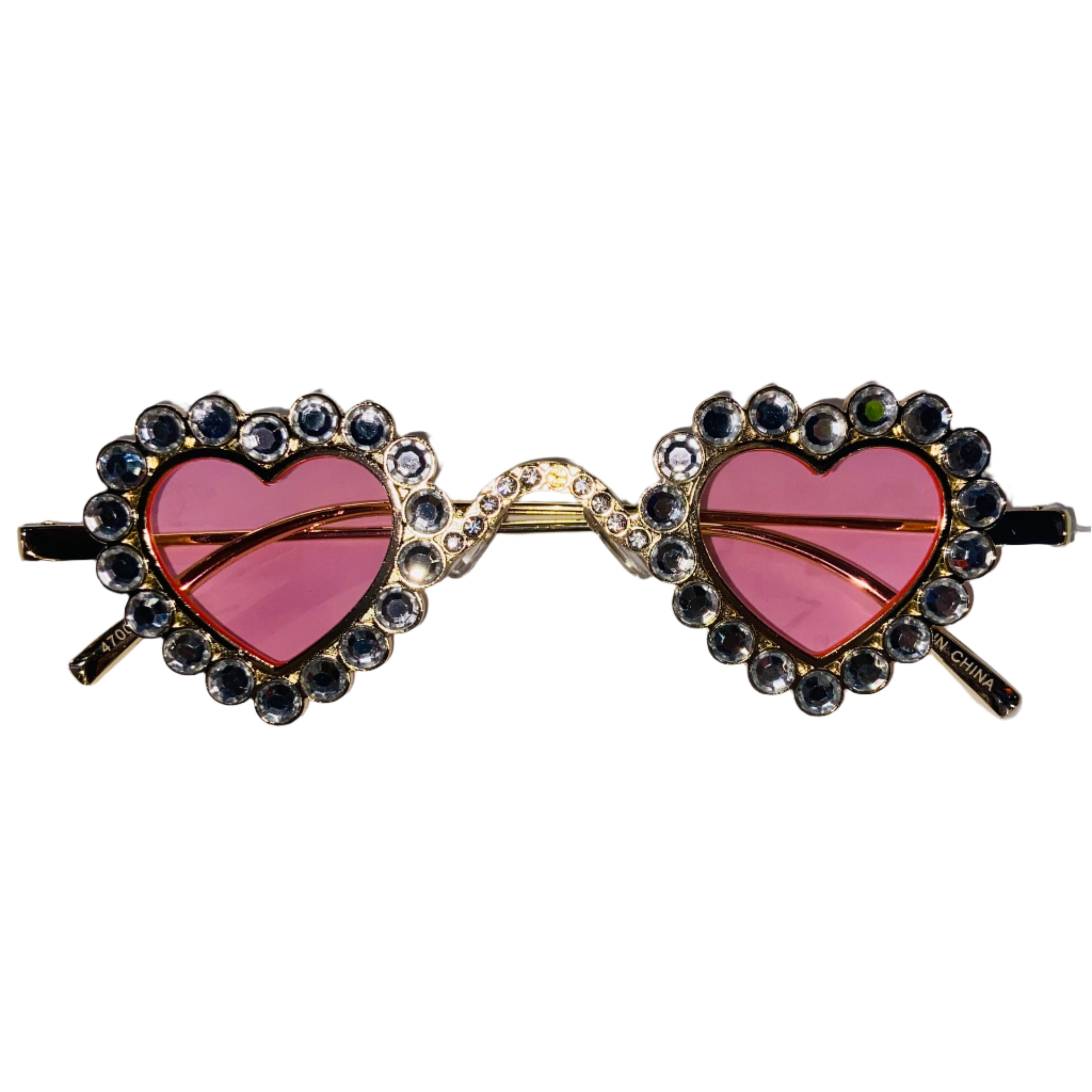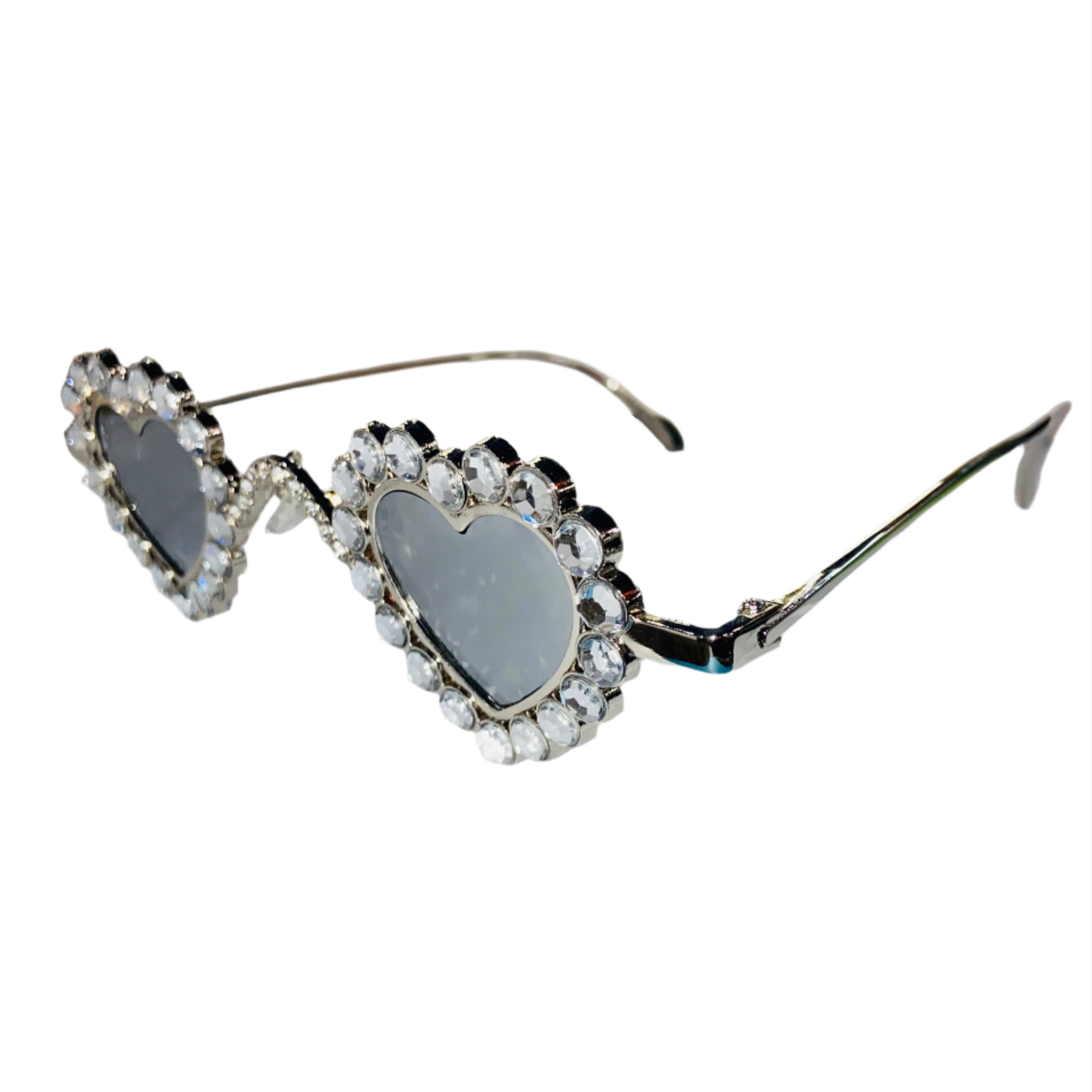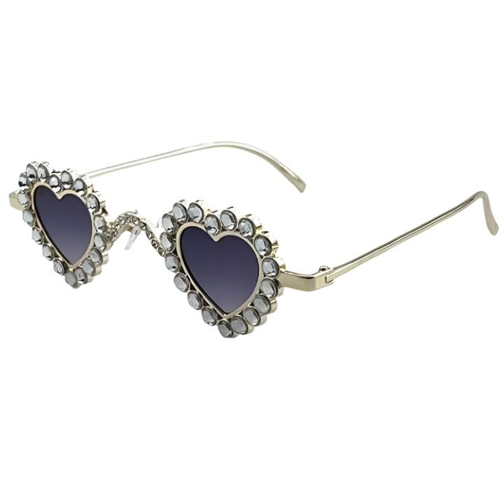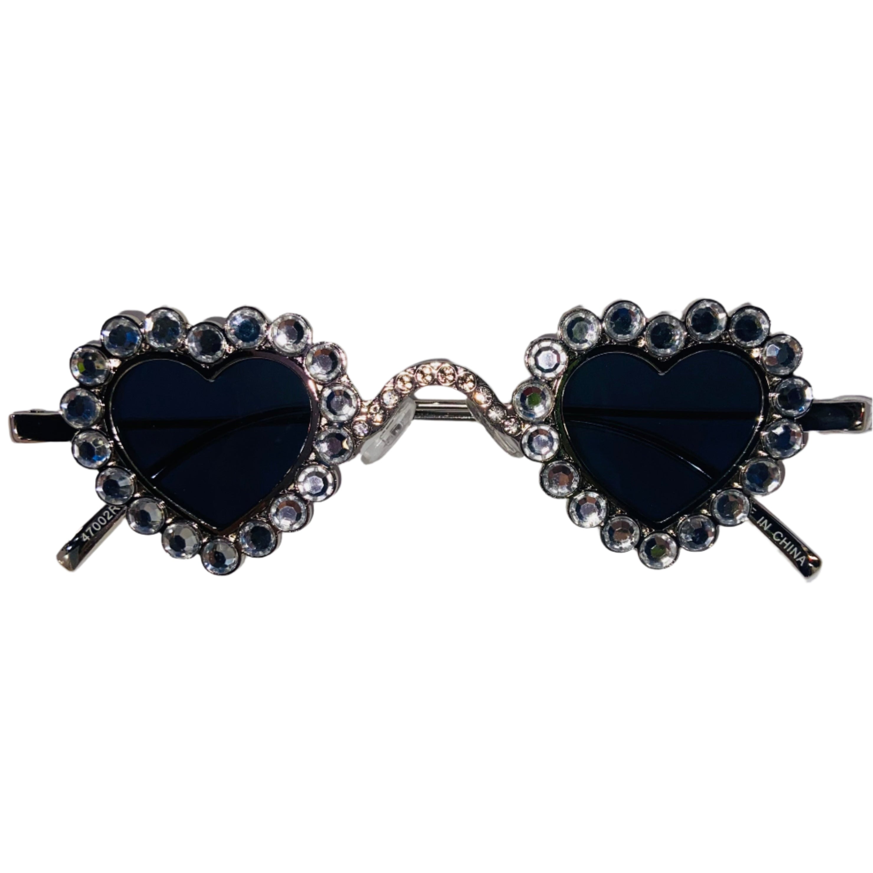 Fall in major love with these adorable Rhinestone Mini Heart Sunglasses! These stylish shades are lined with large silver rhinestones that add a little extra glamour to any outfit.