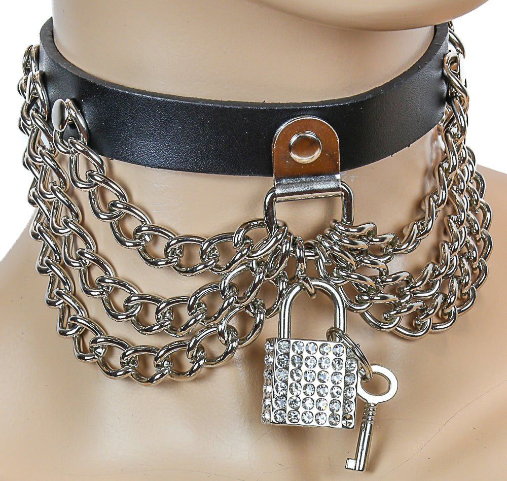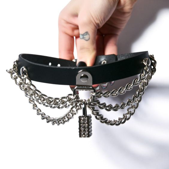 You're gonna look dangerously good in this Rhinestone Padlock Chain Choker! Made with durable black leather and silver metal, this lavish choker is decorated with thick chain drapes and a super sparkly padlock that adds a touch of bling to any baddie wardrobe.