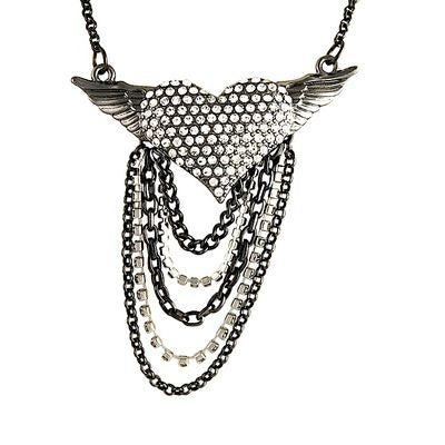 Add a sparkling touch of 90s and Y2K nostalgia with this Rhinestones Heart with Wings Necklace. Its vintage-inspired design brings playful charm and a dash of retro glam to any outfit, making it the perfect accessory to express your fun, carefree spirit. Let your style take flight with this dazzling statement piece!