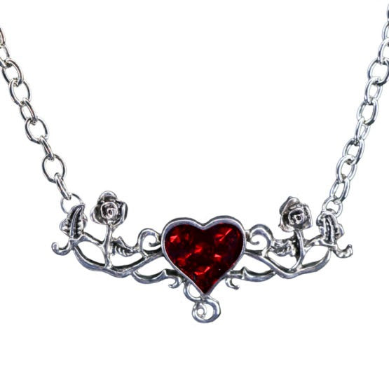 Add a touch of dark romance to your style with this Rose Necklace featuring a charming heart pendant. Perfect for those who love a gothic twist, it blends delicate floral details with a hint of mystery. Wear it to enchant your look and make every outfit a little more magical.