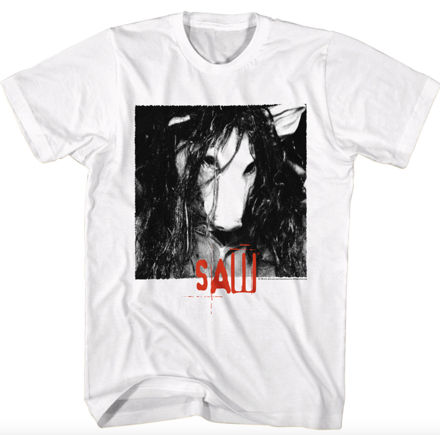 Unleash your inner horror fan with our Saw Pig Mask T-Shirt! This unique and quirky shirt features the iconic Saw Pig Mask, making it perfect for Halloween or any other spooky occasion. Made with high-quality materials, this shirt is both comfortable and stylish. Get ready to turn heads and make a statement with our Saw Pig Mask T-Shirt!