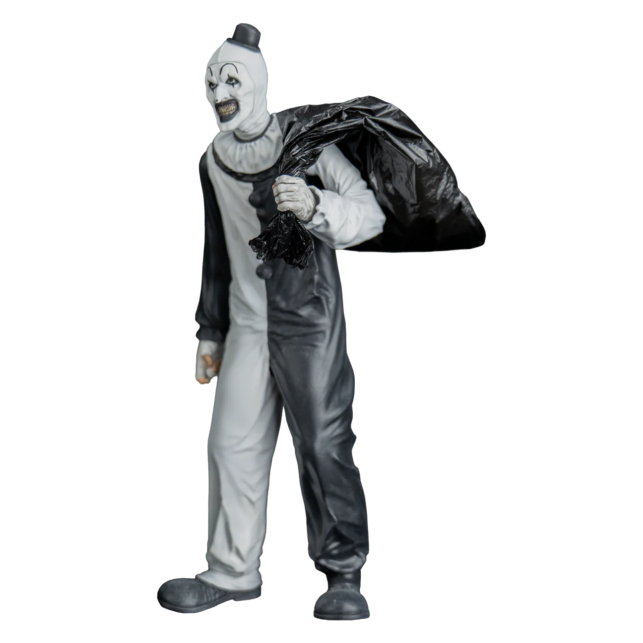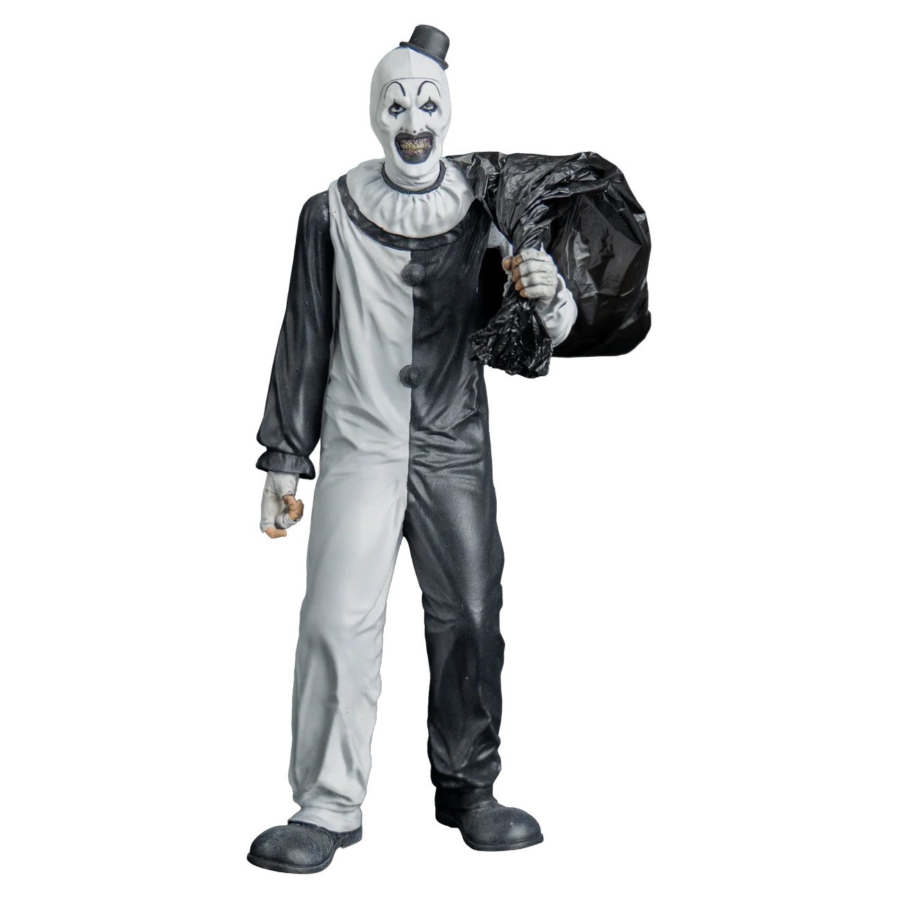 Scream Greats features iconic characters from our favorite cinematic masterpieces! Each highly detailed Scream Greats: Art the Clown Figure is in 8-inch scale and is perfect for display in any collection. Includes Art the Clown 8" Scale Figure with interchangeable face pieces, real plastic trash bag, and hacksaw accessory. Packaged on a backer card with plastic blister.