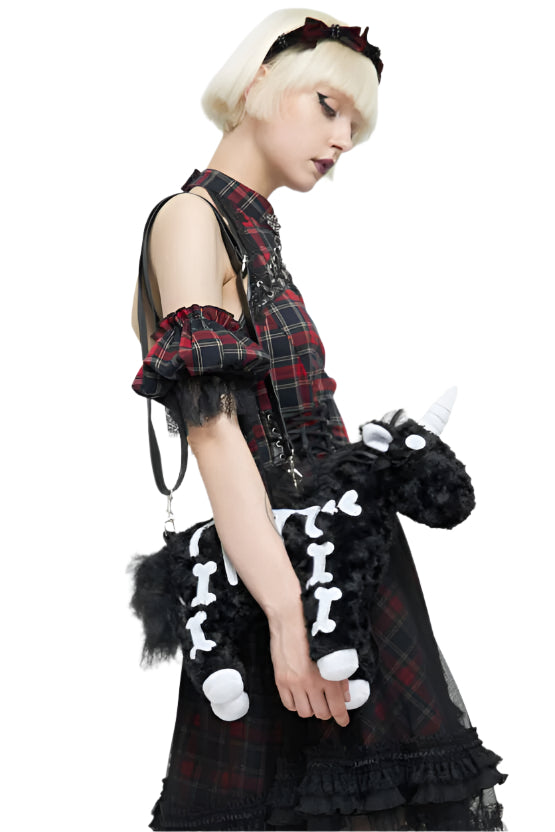 Add a touch of spooky charm with this Skeleton Unicorn Handbag, the perfect kawaii goth accessory. Its unique blend of eerie skeleton design and whimsical unicorn flair makes it an ideal gift for anyone who loves to mix cute with creepy. Carry your essentials in style and show off your darkly playful side wherever you go!
