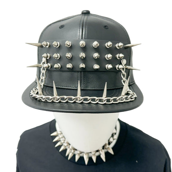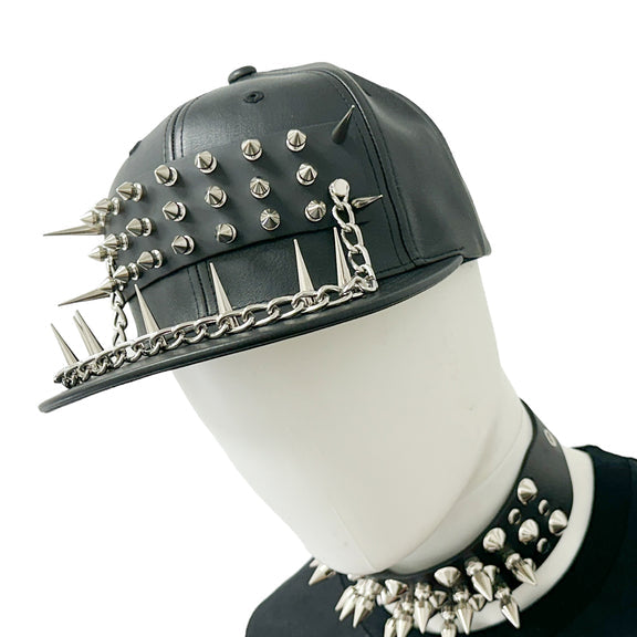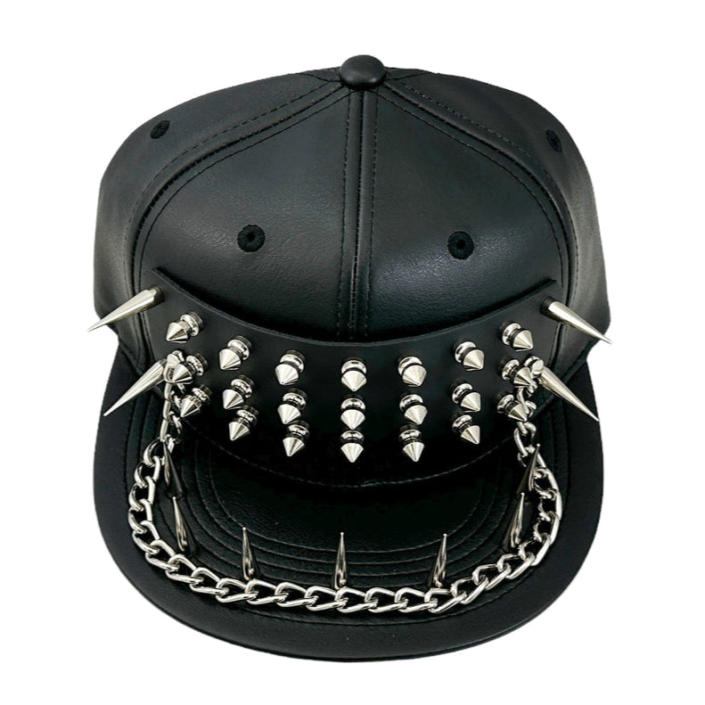 Level up your armor stats with this extra-intense Slugger Spiked Pleather Baseball Cap. This durable headwear is decked out in silver spikes and chains that add a serious winning edge to any ensemble.