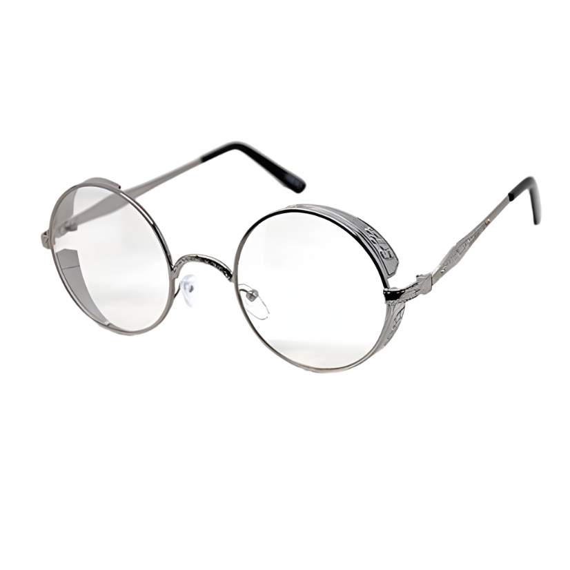 Bring a little airship-ready aesthetic to your look with these Steampunk Shielded Wire Glasses! These sturdy frames feature intricate embossed detail on the shield that add instant charm to any historical or fantasy themed costume.