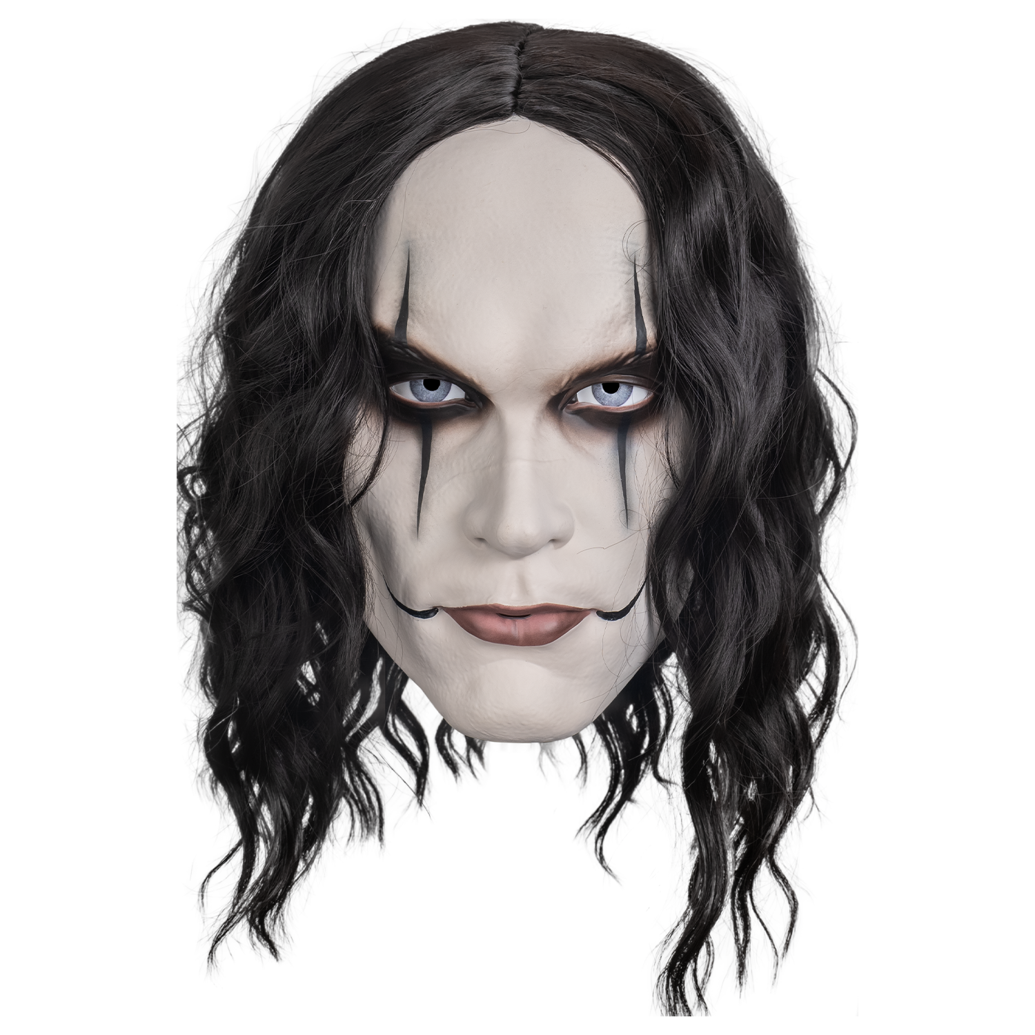 It can't rain all the time... get ready to rise up in this official The Crow Eric Draven Mask. This deluxe face mask is made of rigid plastic sculpted and painted to look exactly like the comic book icon! The mask has an elastic strap to comfortably hold it in place with a styled wig attached to the mask for full coverage and easy wear.