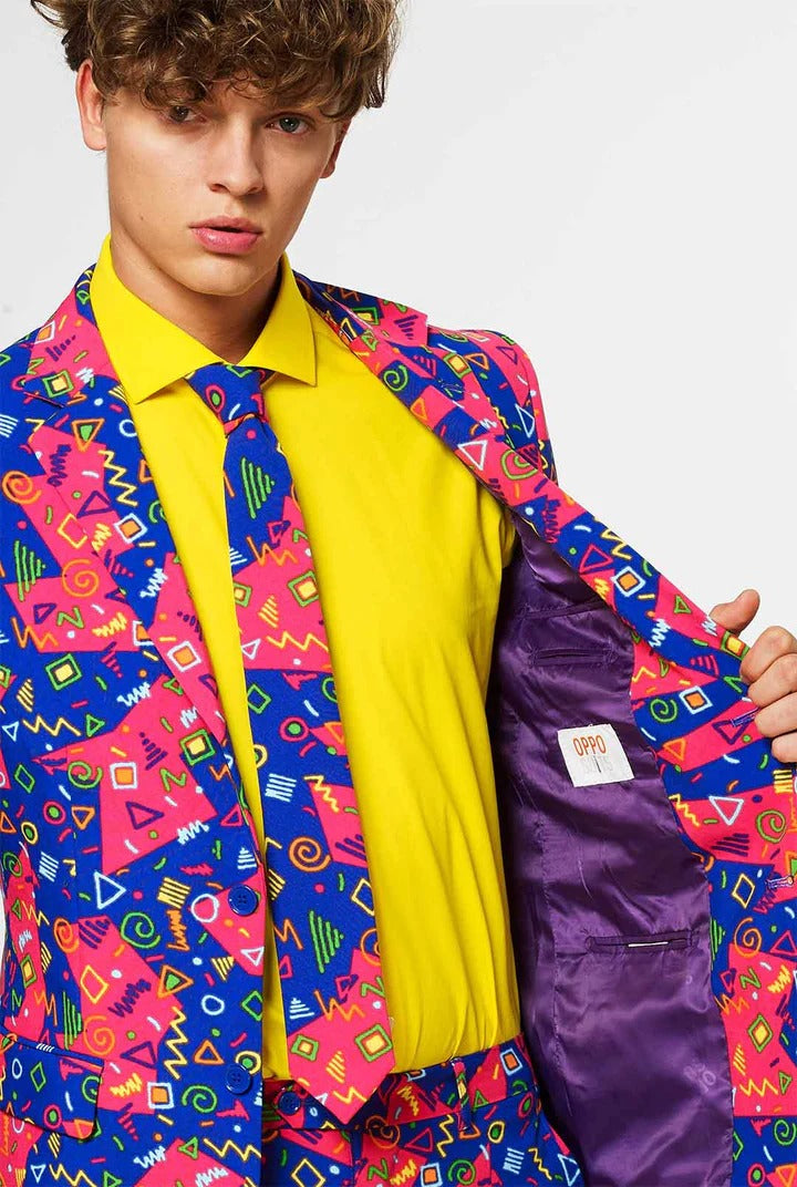 Now, this is a story all about how… Opposuits made a suit dedicated to the colorful decade of the 90’s! Wear this Fresh Prince 3pc Opposuit and you’ll be the dopest dude on the block for sure. That’s right, you no longer need to have an auntie and uncle living in Bel-Air to be the freshest guy in town. Aaiight.