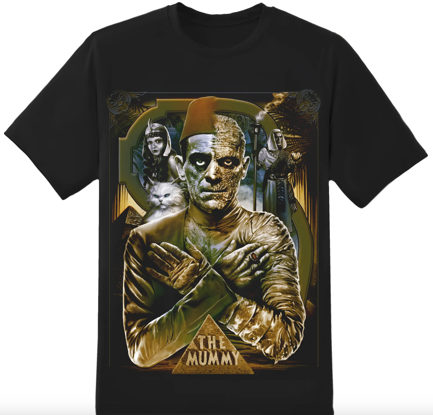 Unleash your inner fashion maven with The Mummy Poster Tee. This edgy tee features a bold and quirky design inspired by the classic film. With its unique style and comfortable fit, you'll stand out from the crowd. Beware, others may be mummified by your killer look.