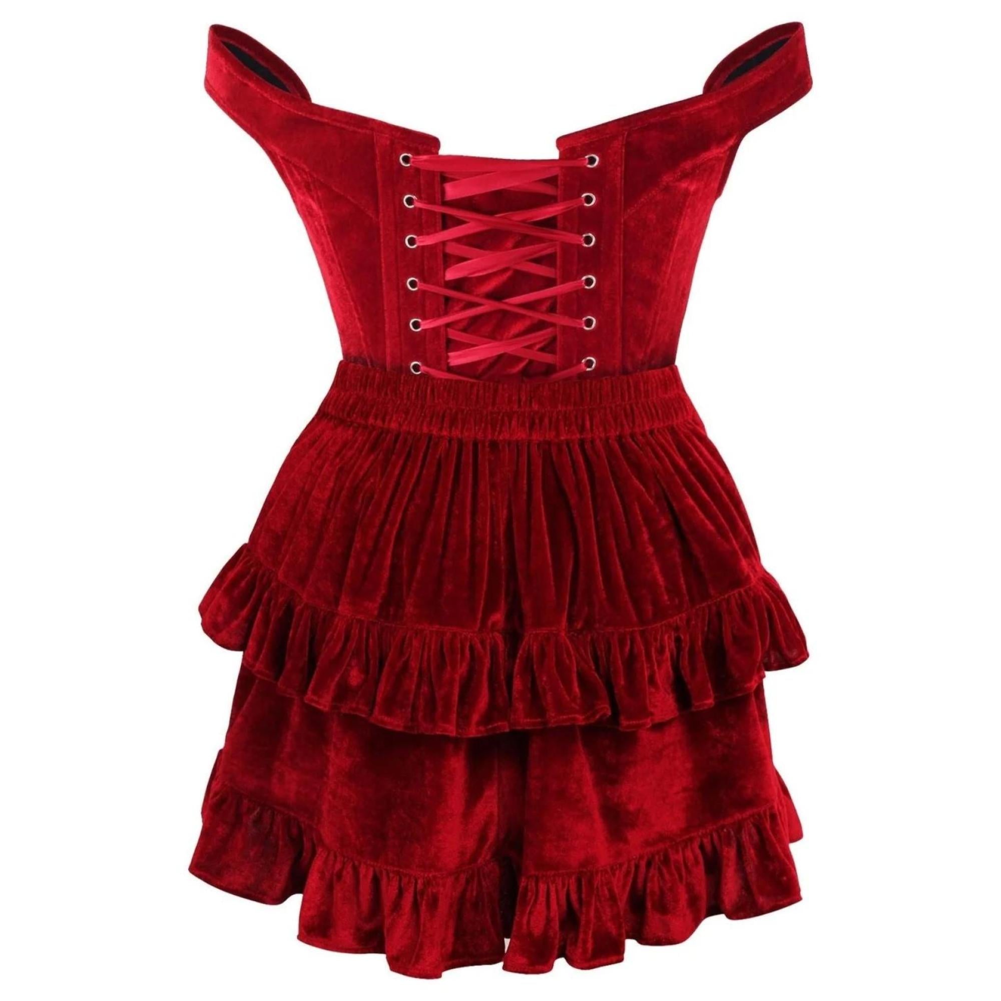 Top Drawer Dark Red Velvet Steel Boned Corset & Skirt Set