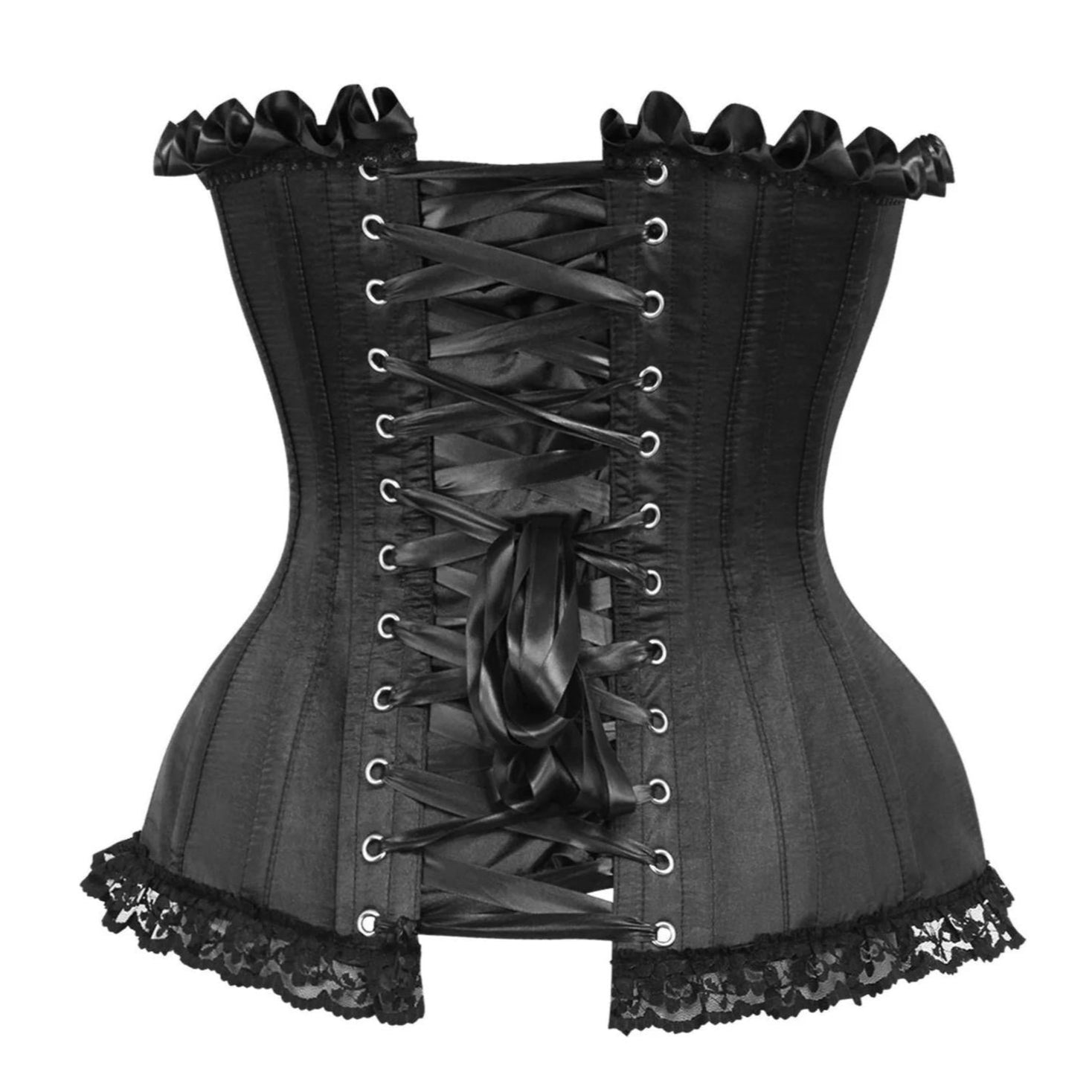 Top Drawer Black Satin Steel Boned Overbust Corset