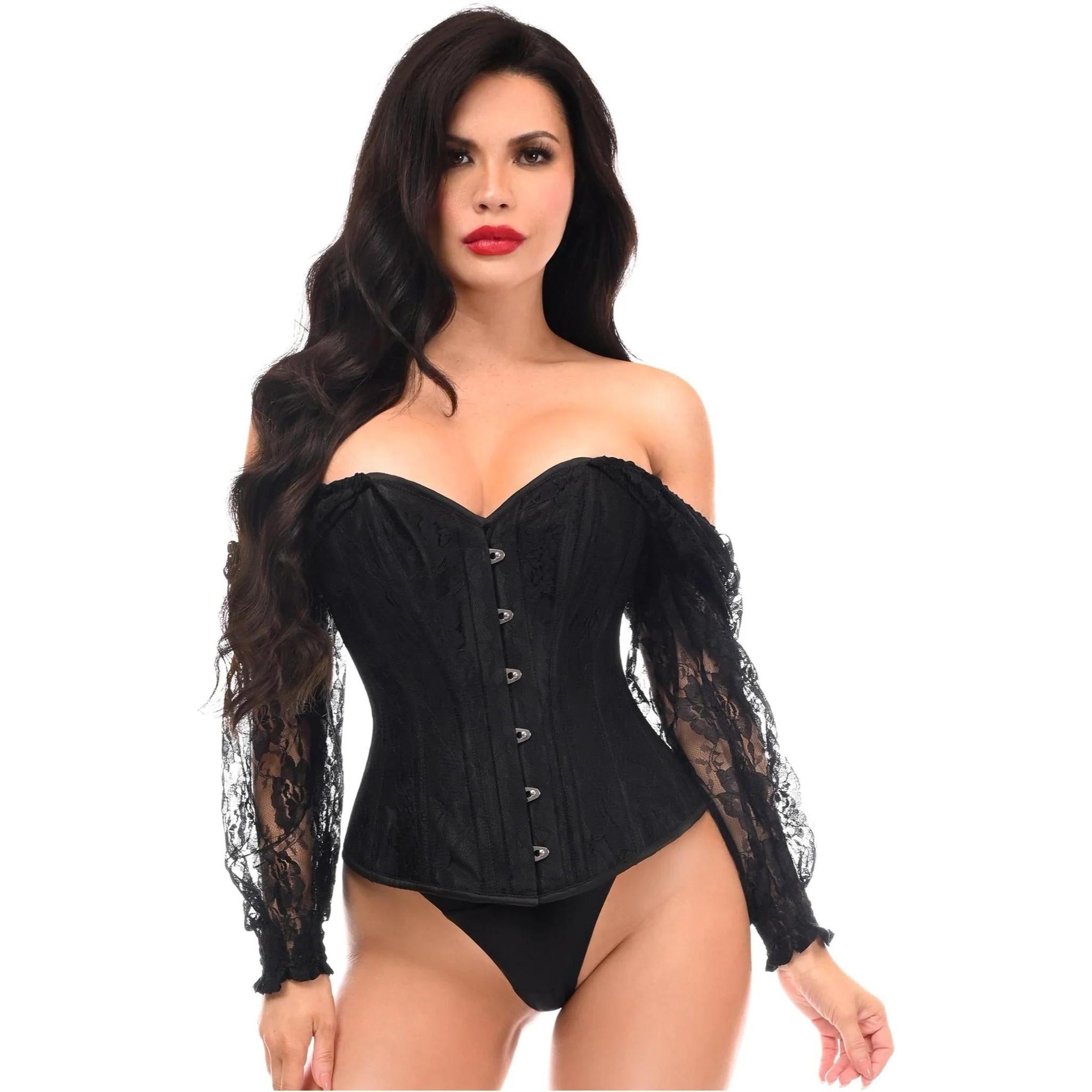 Top Drawer Black Lace Steel Boned Long Sleeve Corset