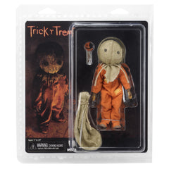 NECA brings Halloween’s most iconic little terror back to your shelf with this chillingly charming collectible figure of Sam from Trick R’ Treat (2007). Standing at approximately 5 inches tall, Sam may be small in stature, but he’s packed with spookiness—and surprises. Clad in his signature orange footie pajamas, this fully articulated 8” scale figure captures the mischief-maker’s creepy-cute essence, complete with a removable burlap sack hood. Remove it to reveal Sam’s unmasked pumpkin-skull visage, now featuring a jaw that actually opens.