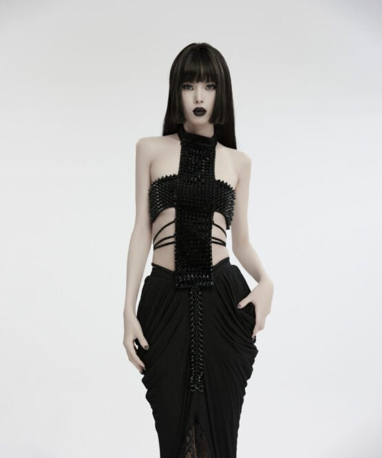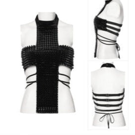 Make a bold statement with the Unholy Black Spike Studded Strappy Cross Halter Top. Featuring adjustable buckle straps for a custom fit, this edgy piece combines a sexy halter neck with waist strings to highlight your silhouette effortlessly. Perfect for standing out, it’s designed to add a daring touch to any outfit while ensuring comfort and confidence. Available in size XL/2XL